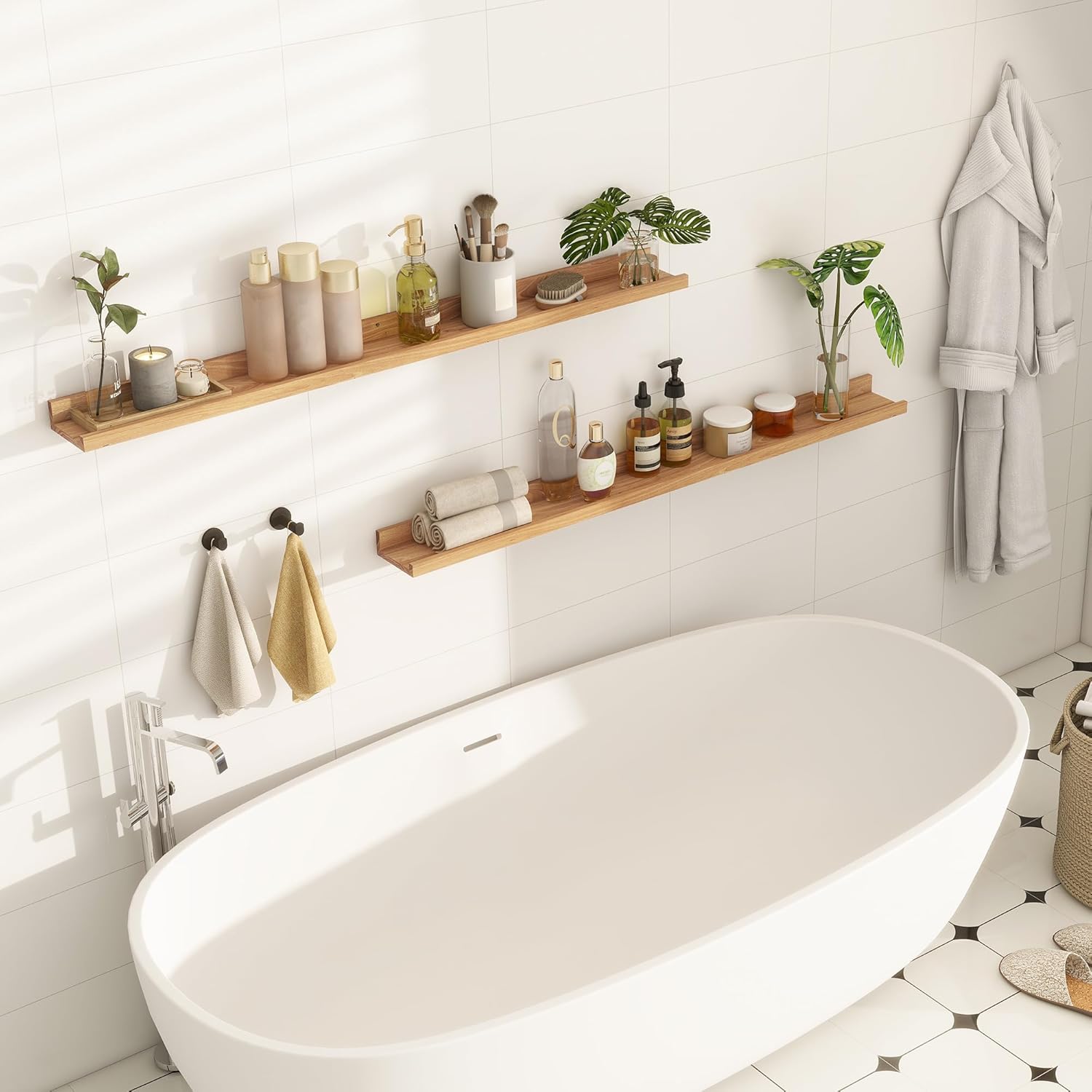 - ăWall-Mounted Floating ShelvesăAdd style and storage to any room with these floating shelves. Perfect for showing off home decor, photos, plants, and more. Place them above the fireplace, entryway, desk, or in other unused wall spaces to instantly enhance your space.