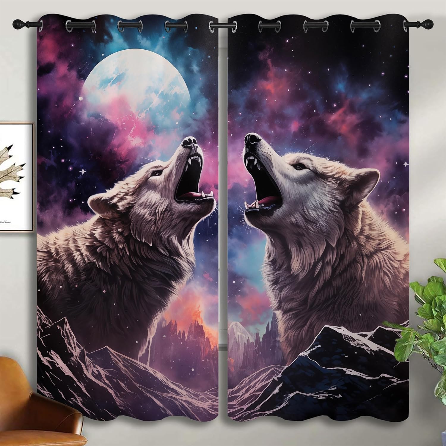 - ✿【Fashion Design】: Featuring a "Wolf themed print with a "Fantasy Starry Sky Galaxy Forest Wildlife design, these curtains will enhance the decor of any room. Perfect for kitchens, bedrooms, living rooms or any other space in your home.