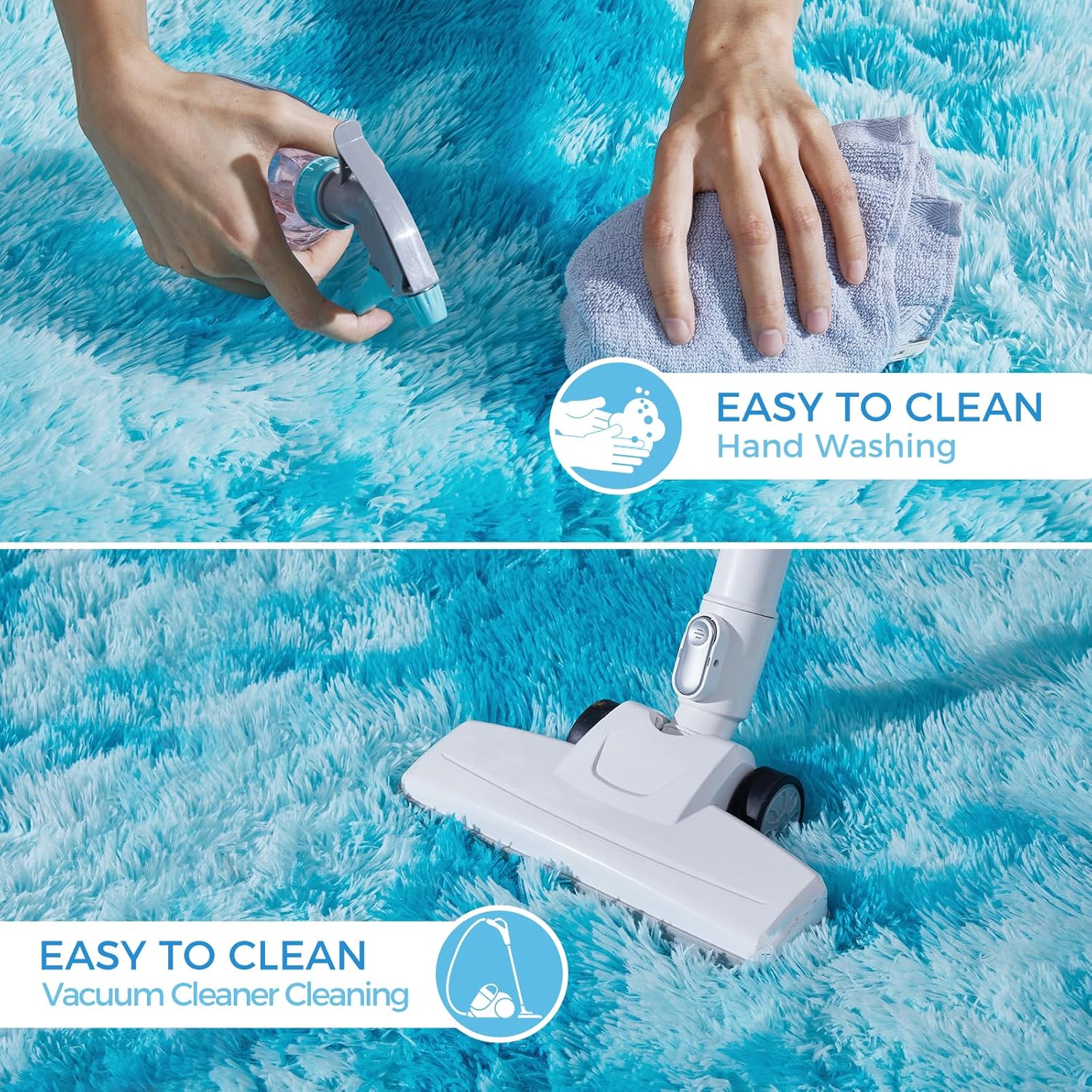 - đź’—Easy To Clean - We recommend that you can directly shake off the impurities on the surface of the shaggy carpet or use a vacuum cleaner for daily cleaning. For deep stains, you can choose to wash by hand . After cleaning, place it in a ventilated place to air dry. Note: Vacuum packed, please lay flat and will fluff up back in 2-3 days.