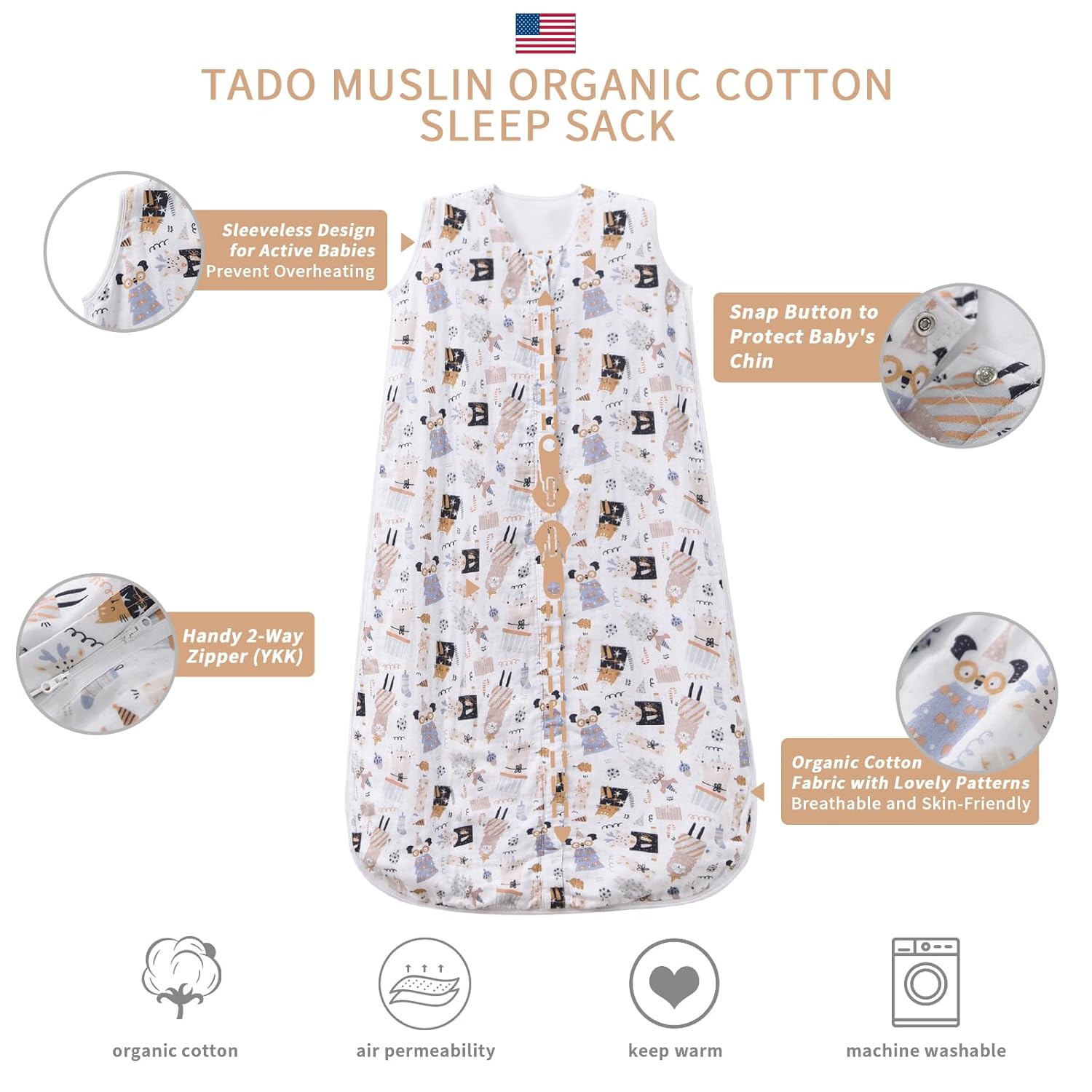 - TADO MUSLIN: Your Trusted Sleep Solution: As a leading brand in premium baby products, we prioritize your child's comfort and safety. Our sleep sacks are OEKO-TEX certified. The cute pattern on the sleep sack is colorful, fade-resistant, and durable through many washes. TADO MUSLIN sleep sacks offer the perfect blend of quality, durability, and style. Choose TADO MUSLIN for a sleep environment that nurtures your little one's growth and development
