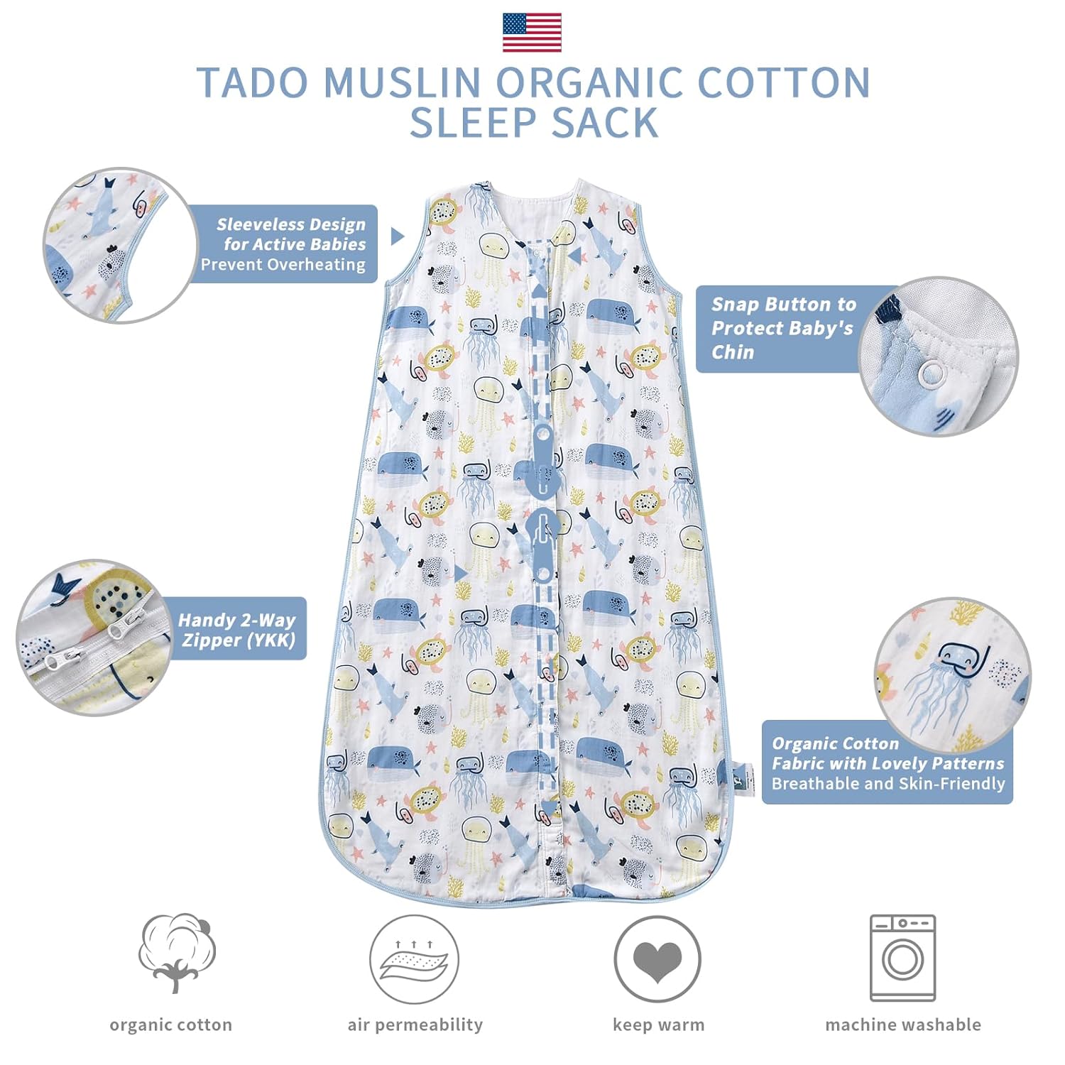 - TADO MUSLIN: Your Trusted Sleep Solution: As a leading brand in premium baby products, we prioritize your child's comfort and safety. Our sleep sacks are OEKO-TEX certified. The cute pattern on the sleep sack is colorful, fade-resistant, and durable through many washes. TADO MUSLIN sleep sacks offer the perfect blend of quality, durability, and style. Choose TADO MUSLIN for a sleep environment that nurtures your little one's growth and development