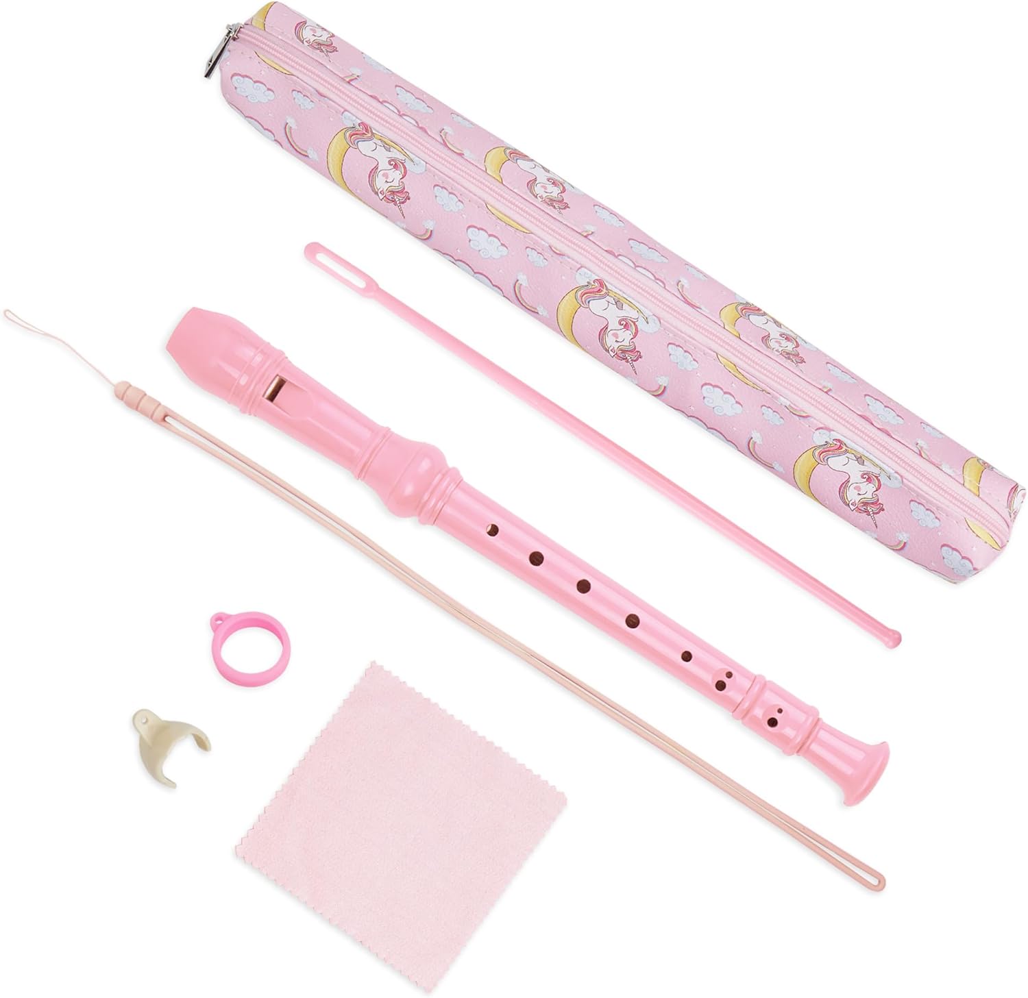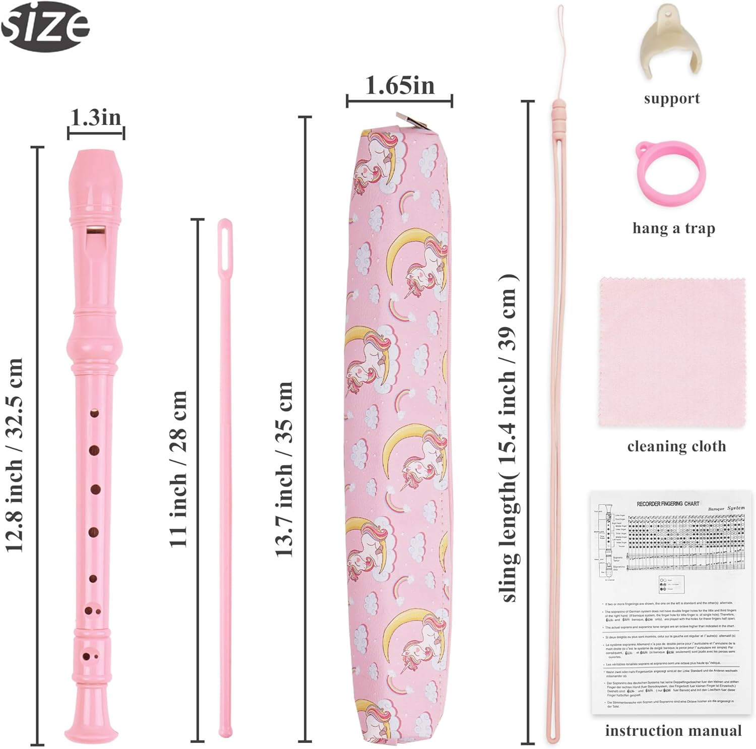 Recorder Instrument for Beginner Adults,8-Hole Soprano Descant Recorder Music Flute with Cleaning Rod & Case Bag For Home Entertainment(2-Pink Unicorn2)