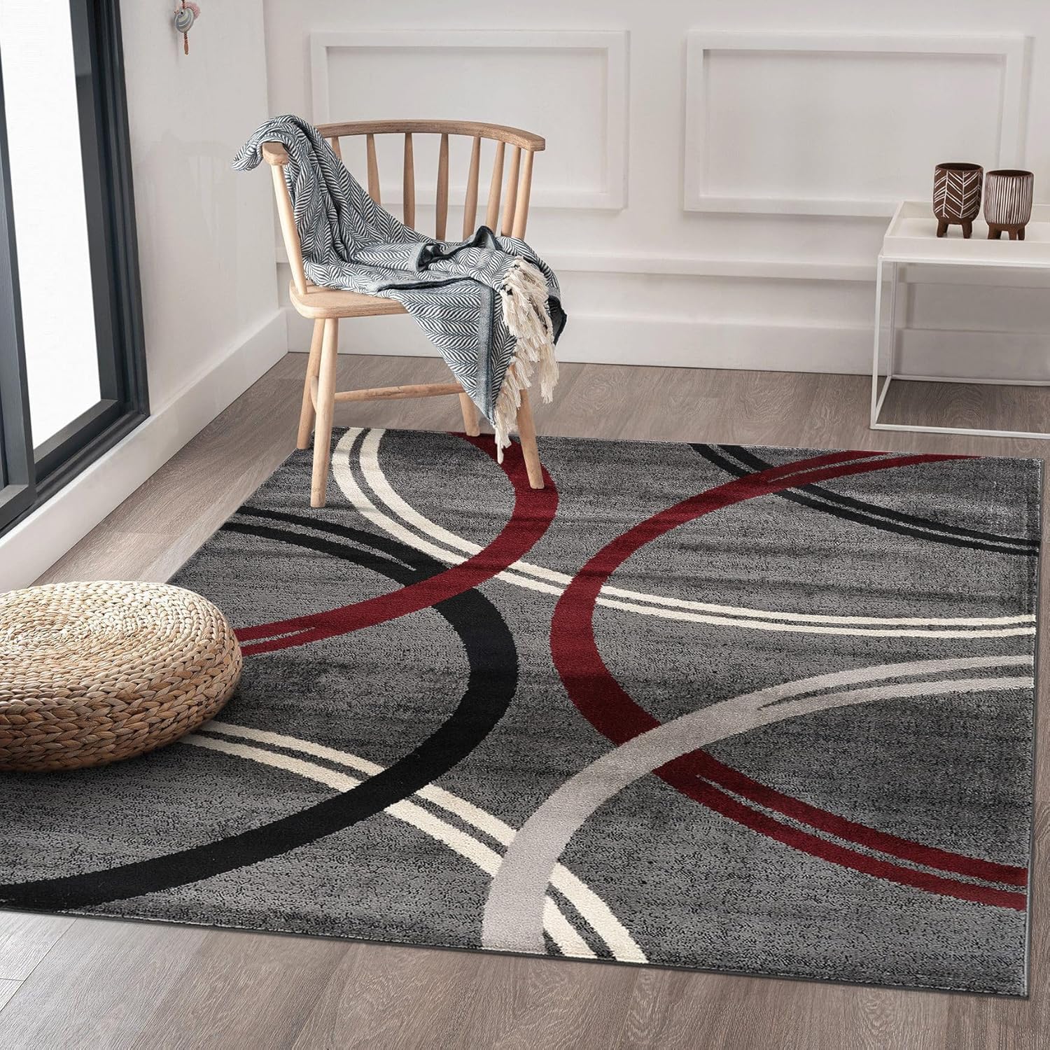 Rugshop Modern Wavy Circles Design Square Area Rug 6'6" x 6'6" Red