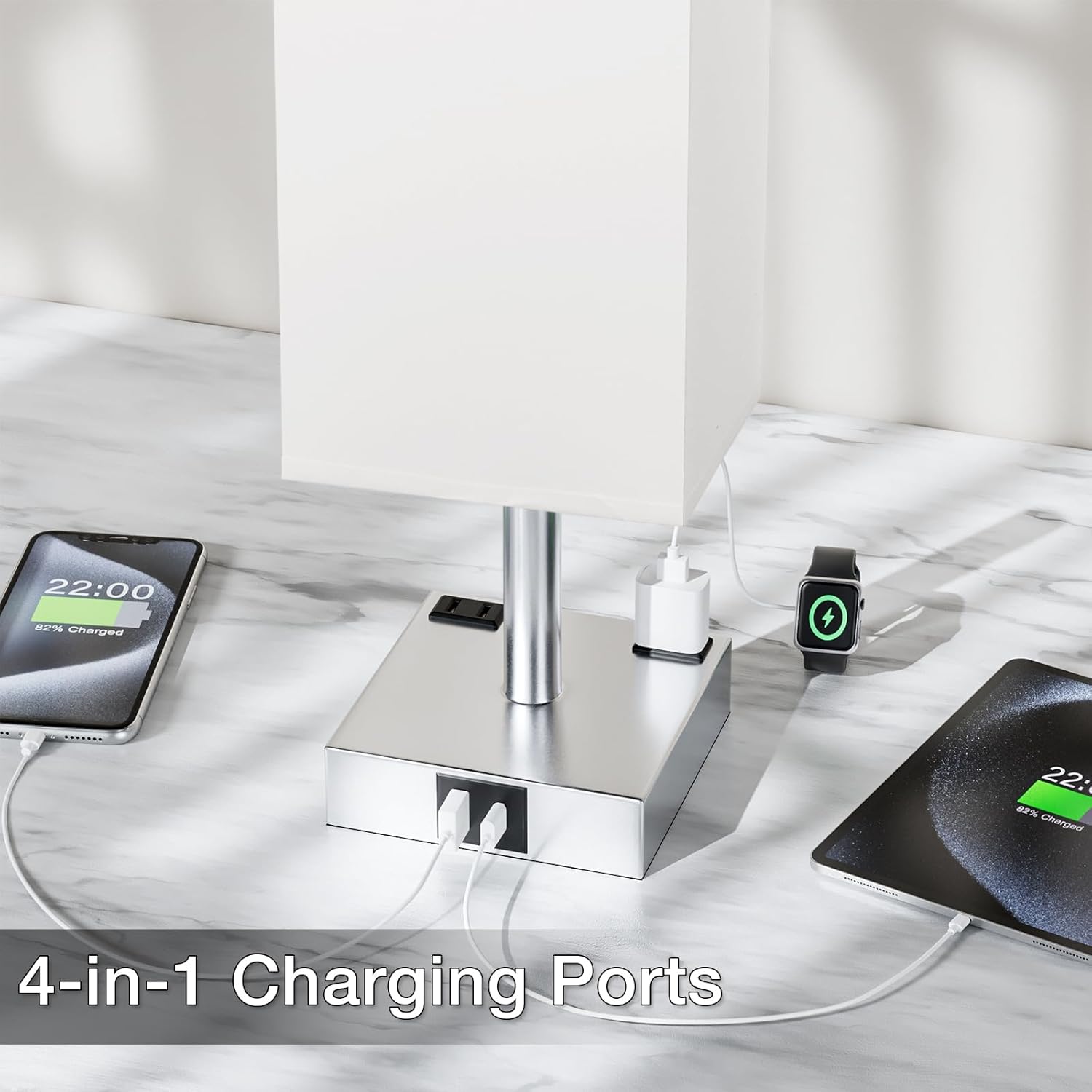 - 3-in-1 Fast Charing Lamp for Nightstand - This small bedroom lamp with usb port and outlet (USB A + type C ports + dual AC power outlets) for connecting and conveniently charging multiple devices. Whether the bed side light is on or off, it can quickly charge your smartphone, kindle, tablet, watch and other devices