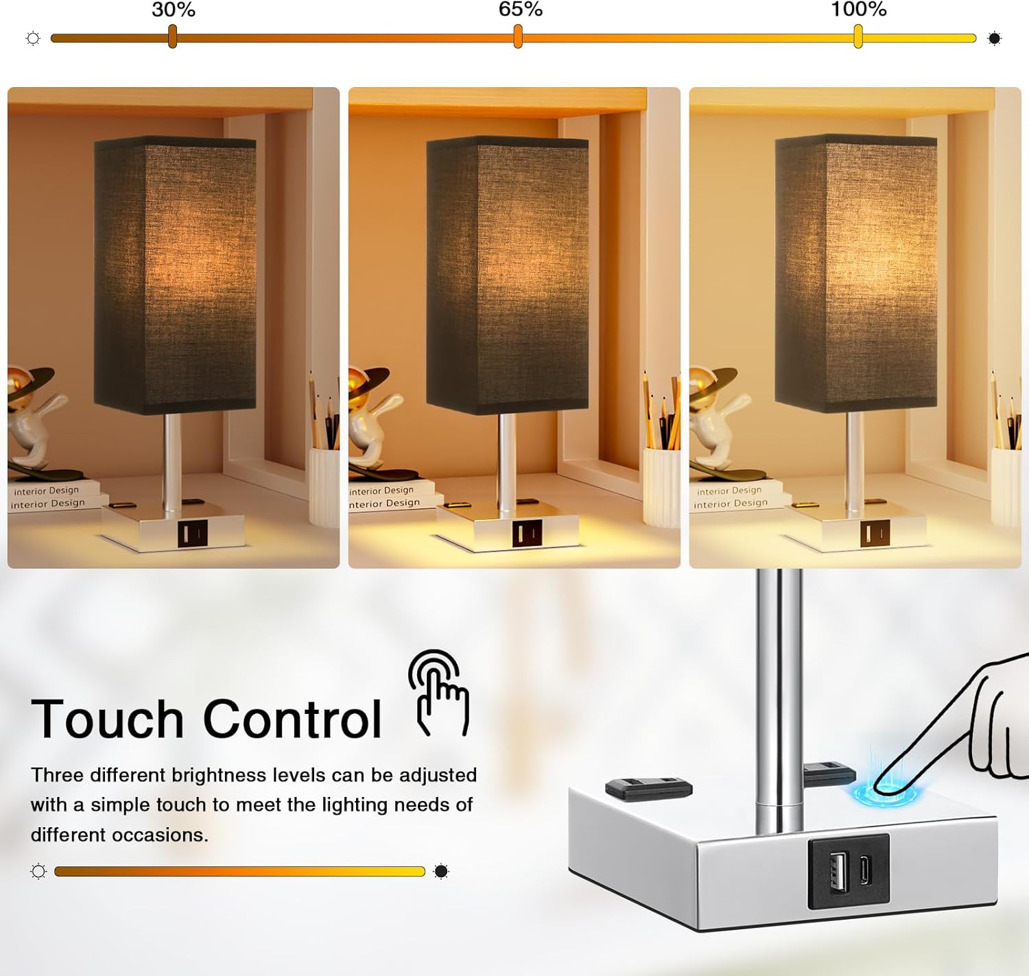 - 3-Way Dimming Touch Lamp for Bedroom - The black silver bedside table lamp has a built-in sensitive touch sensor that allows you to smoothly switch between three different brightness levels with a simple touch on the metal base. Low brightness soft lighting creates a cozy and quiet atmosphere. Medium brightness is moderate and helps to concentrate on study and work. High brightness lighting ensures clarity for fine visual tasks