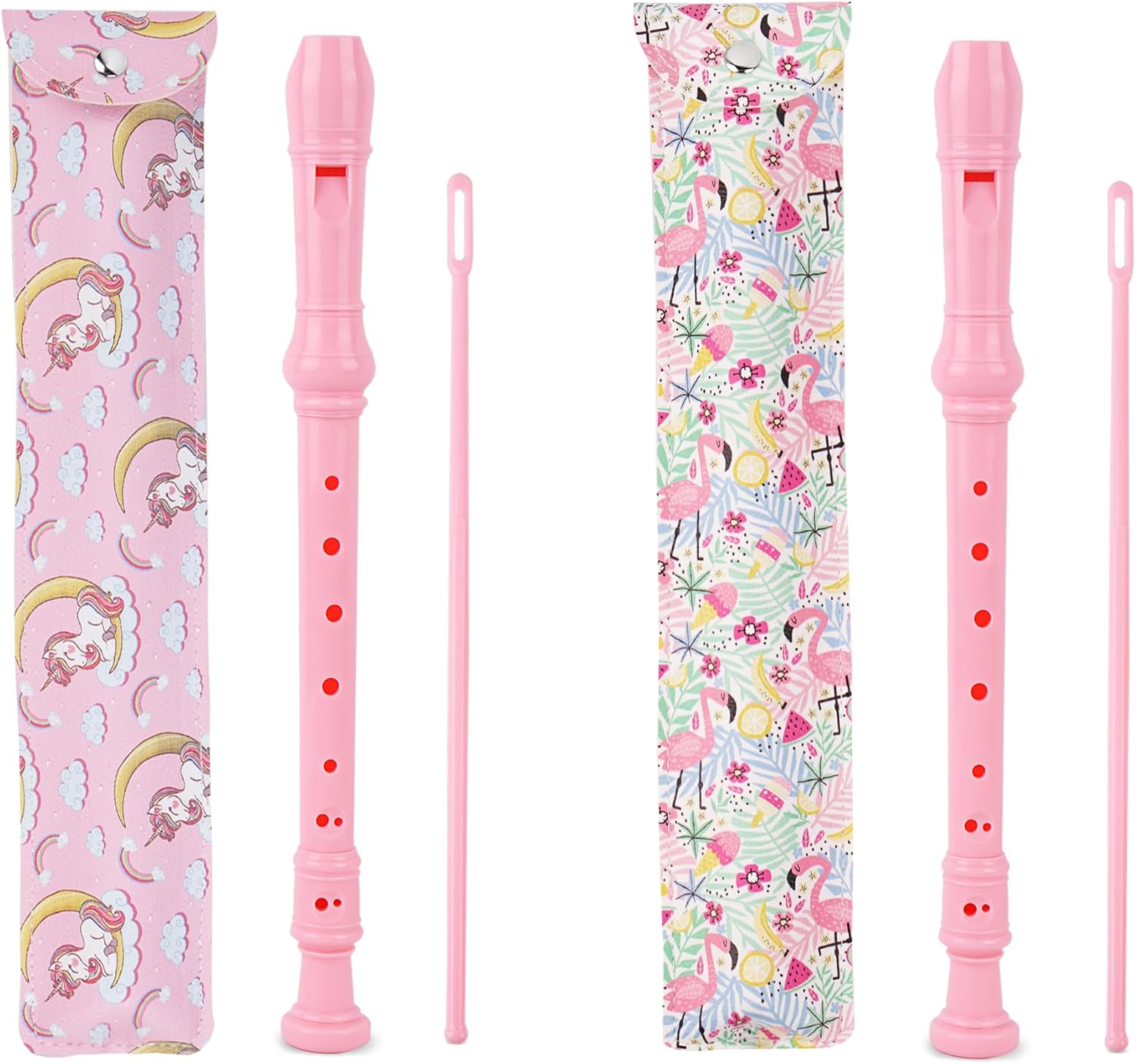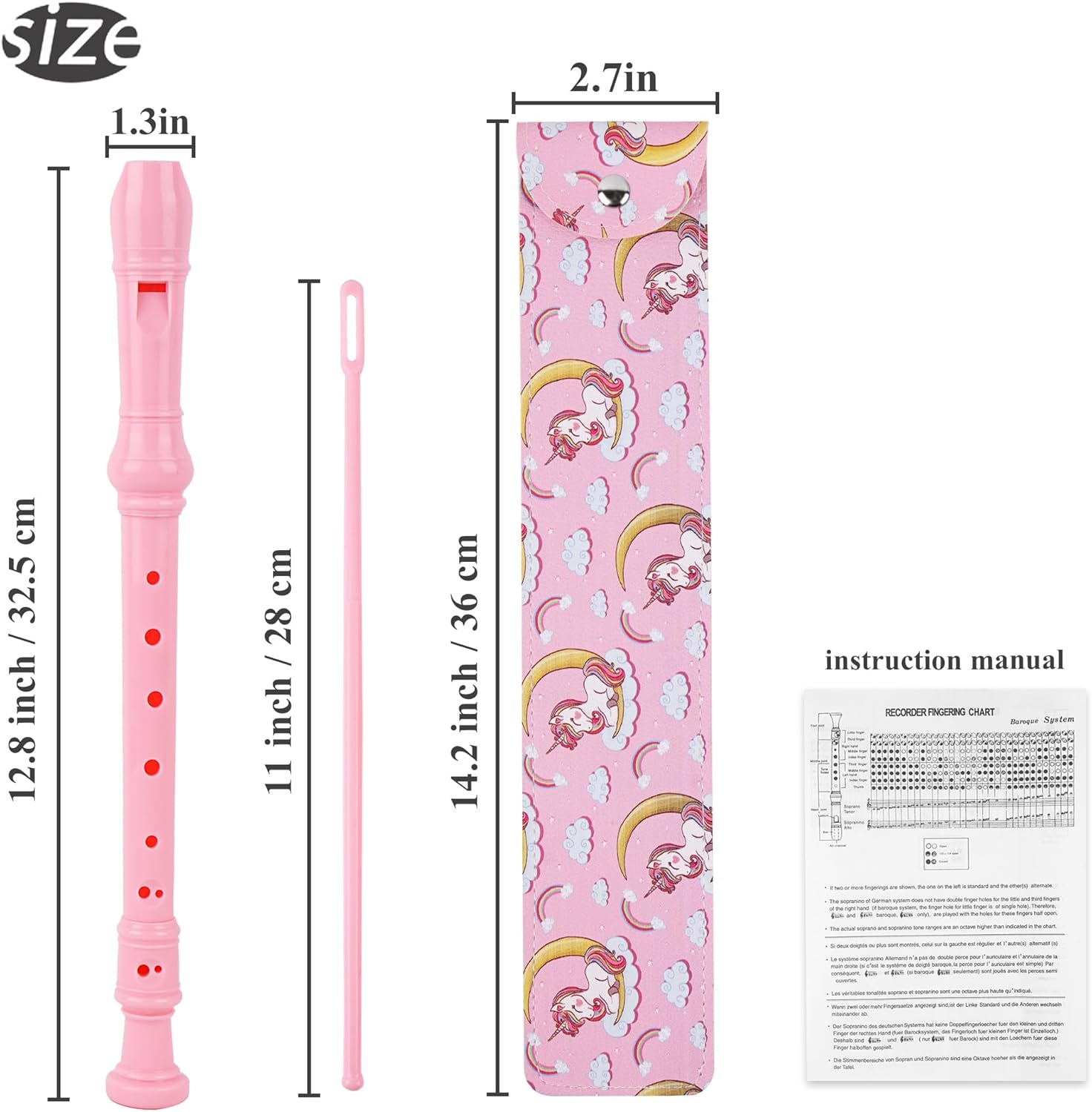 Recorder Instrument for Beginner Kids Adults,8-Hole Soprano Descant Recorder Music Flute with with Cleaning Rod & Leather Case For School Student Home Entertainment(4-Pink Unicorn Flamingo)