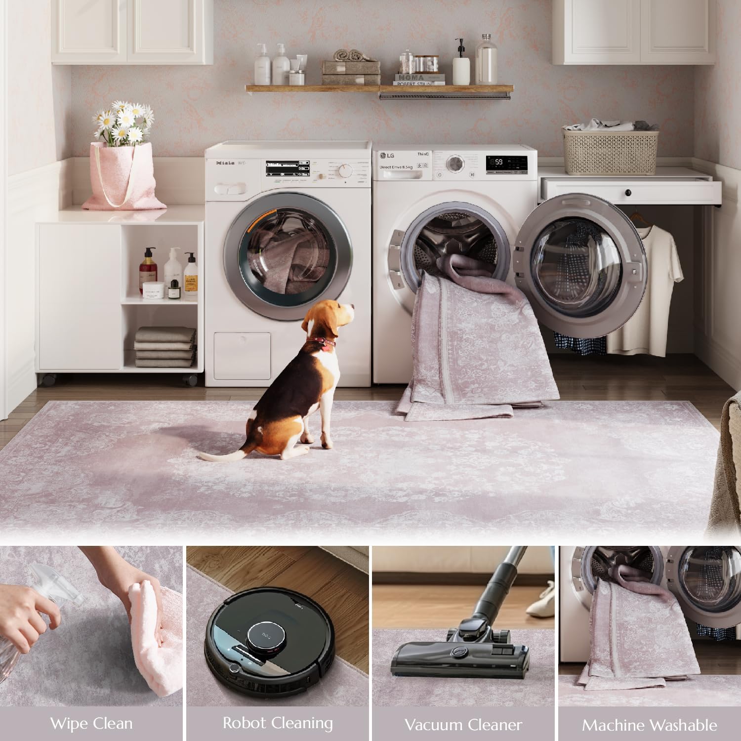 - Easy to Clean:With its stain resistant and easy to clean surface, Jinchan rug requires only minimal effort to keep it looking its best.Please try to Machine wash or vacuum regularly.Use a handheld small vacuum cleaner to remove the dust or hair for daily care. Machine wash with cold water on gentle cycle