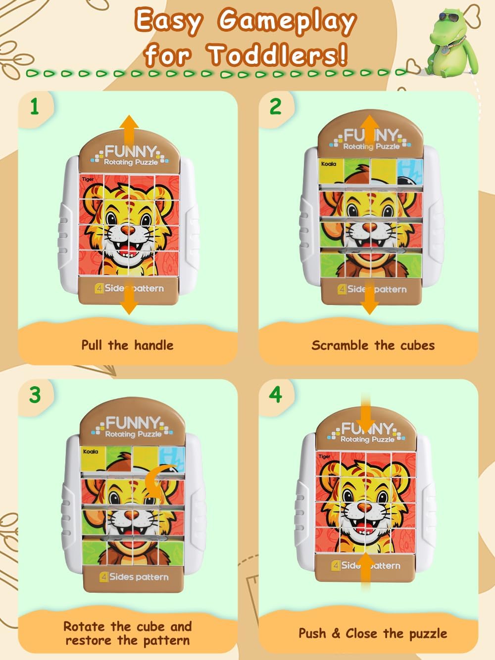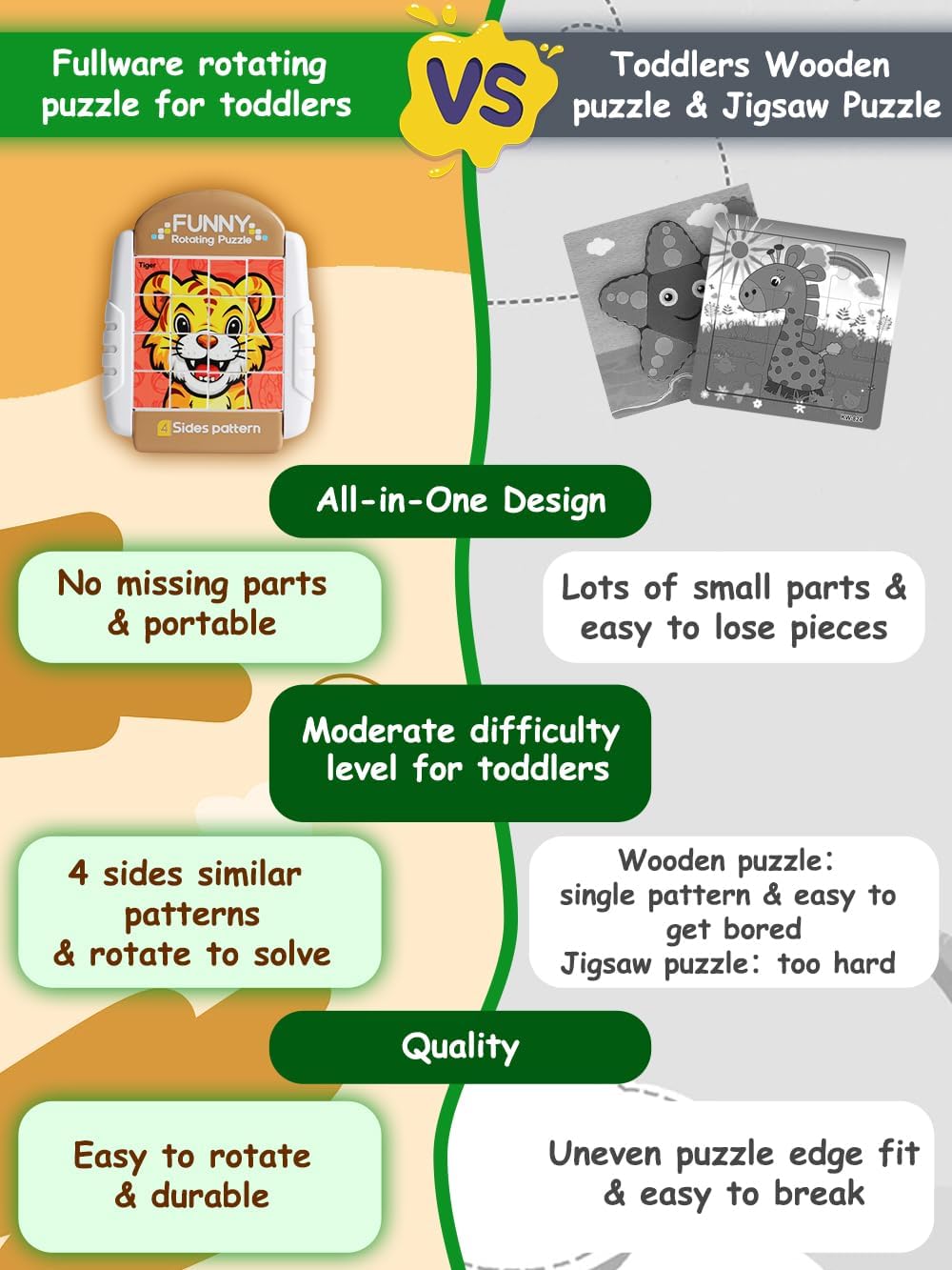 - A HANDY TOY FOR OUTINGS - Whether in the car or at a restaurant, our compact Rotating Puzzles can be carried along and keep children quiet and occupied. Moreover, there is no risk of missing pieces after playing with this all-in-one design puzzle!