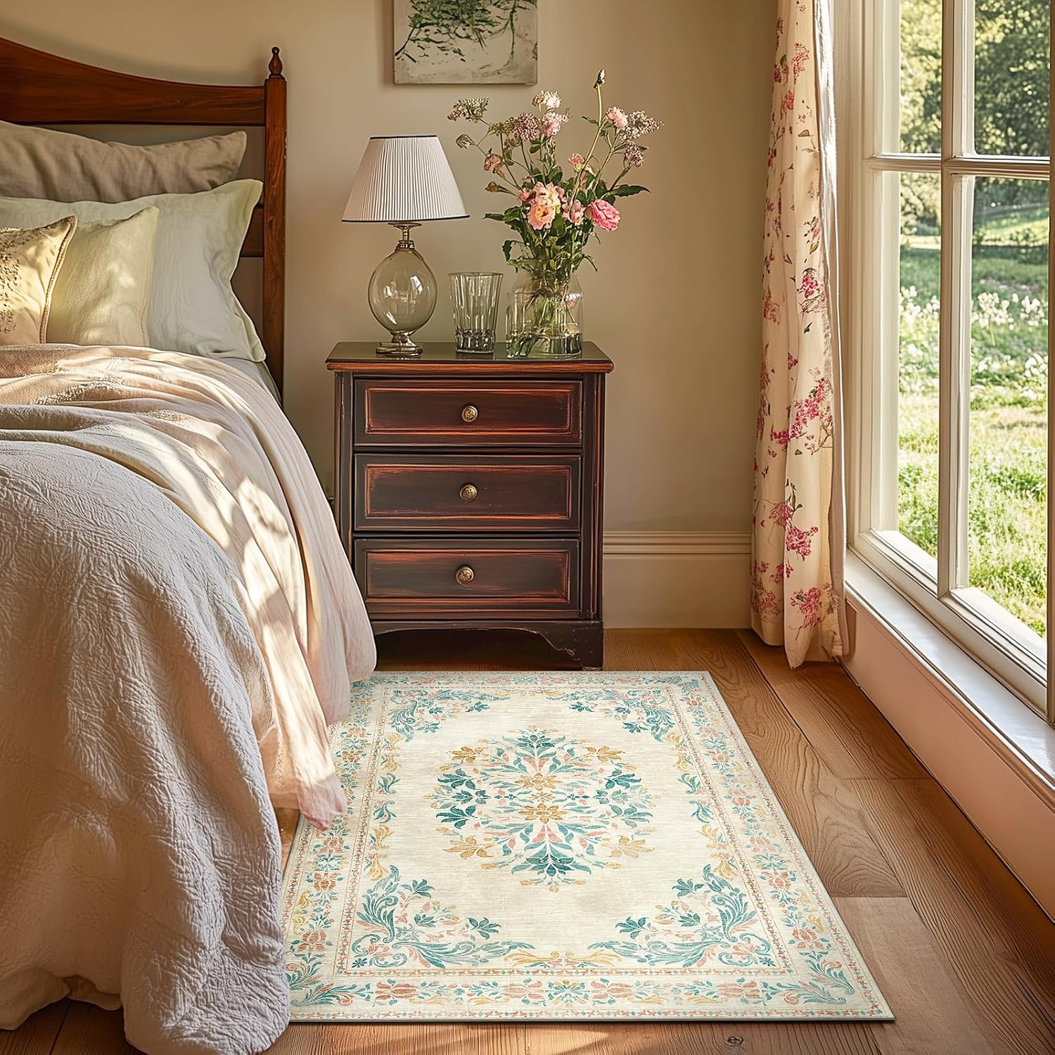 - Floral Vintage Design: Our rug features a stunning floral medallion design, adding a touch of elegance and sophistication to any room. The floral patterns and traditional border will enhance any room's aesthetic