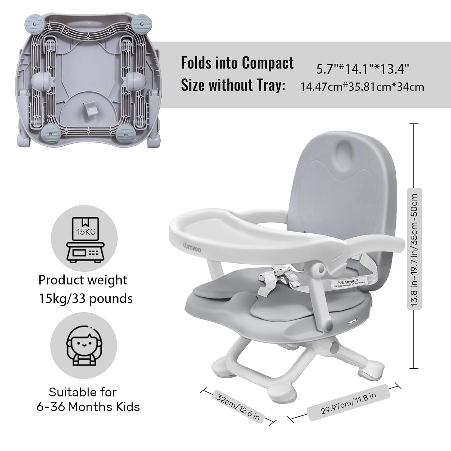 - Every Moment Together Counts: UBRAVOO is devoted to having happy meal time when our high chair booster seat in use, helps your baby participate in family mealtime. With your baby in this booster chair, you can be hands free during mealtimes to eat your own food, your little one also learn to eat the same way.