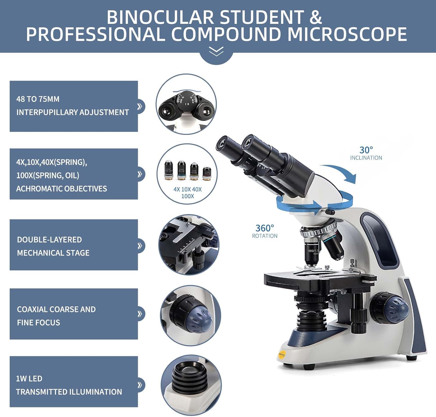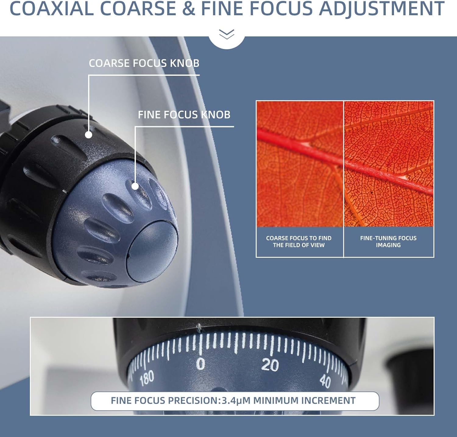 - CLEAR VISUALS: The 40X-2500X magnification range and 5MP USB camera allows you to see even the smallest details on your microscope slides with crisp, high resolution views