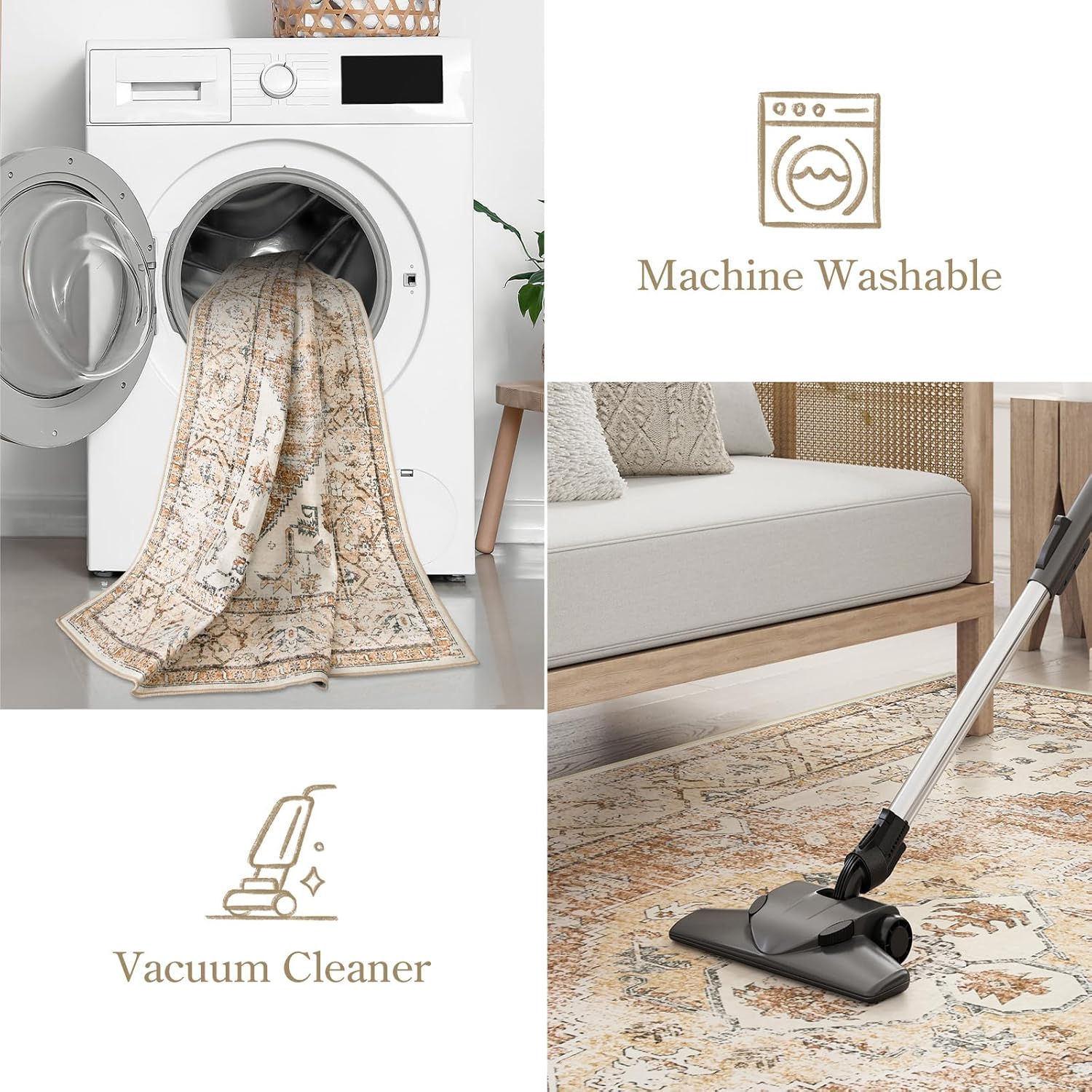 - 【Machine Washable Rugs】:Lahome washable 9x12 rugs are created to make maintenance a breeze. Not easy to change its shape after washing. Use a handheld small vacuum cleaner to remove the dust or hair for daily care. Wipes up spills on the surface of the rug directly. Machine wash with cold water on gentle cycle. Do Not Use Chlorine Or Bleach