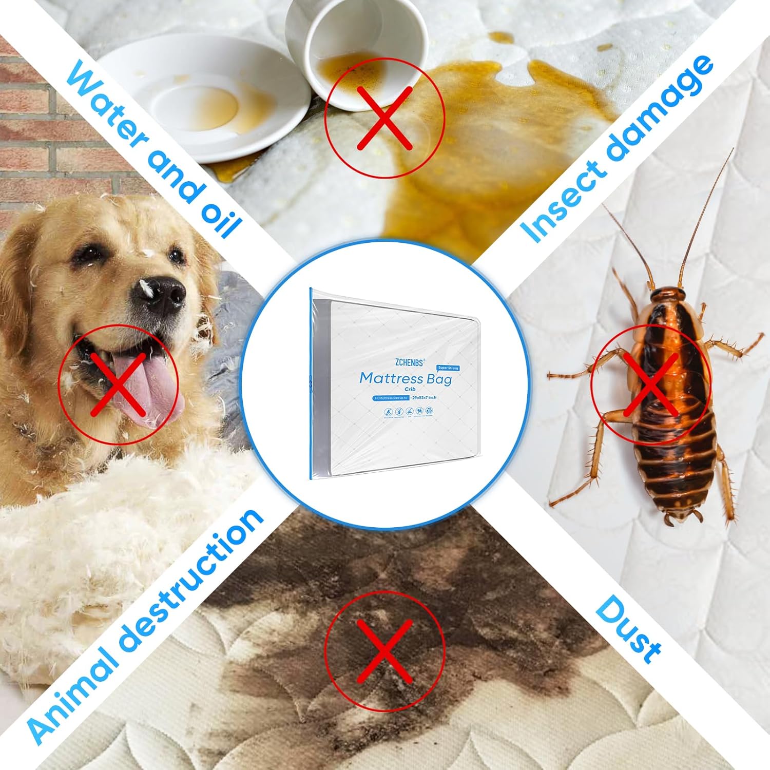 ZCHENBS® – Mattress Bags for Moving and Storage,Mattress Bag with Zippers,5 Mil Ultra-Thick Bed Bag,Waterproof,Anti-Tear,Heavy-Duty Mattress bag (Transaparent/Blue, Crib-(1 Pack))