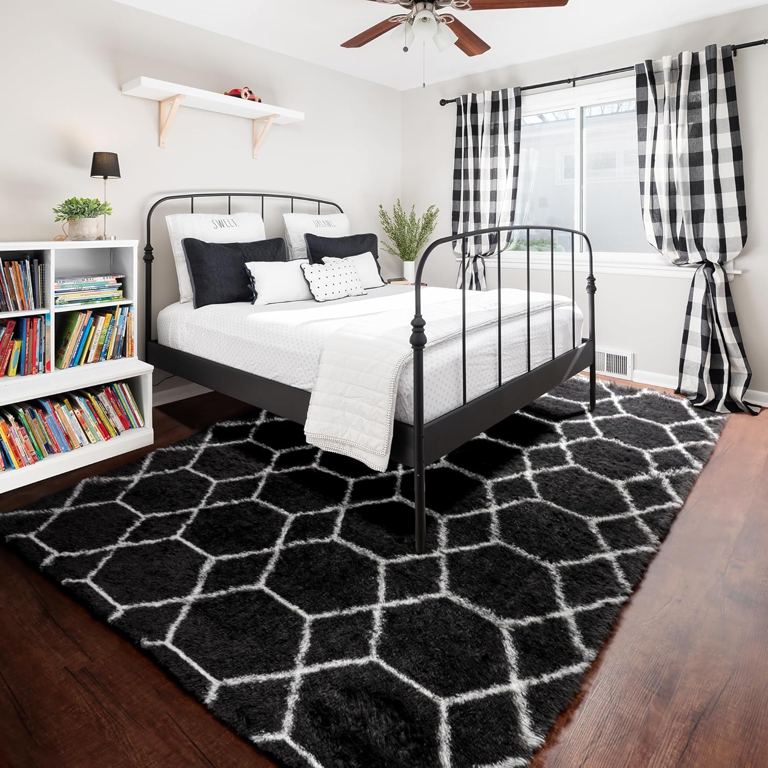 ONASAR Large Area Rugs for Living Room, 7x10 Black and White Rug, Boho Thick Floor Mat for Bedroom Home Decor Aesthetic, Soft Fuzzy Shaggy Plush Fluffy Geometric Carpet for Teen Dorm Classroom