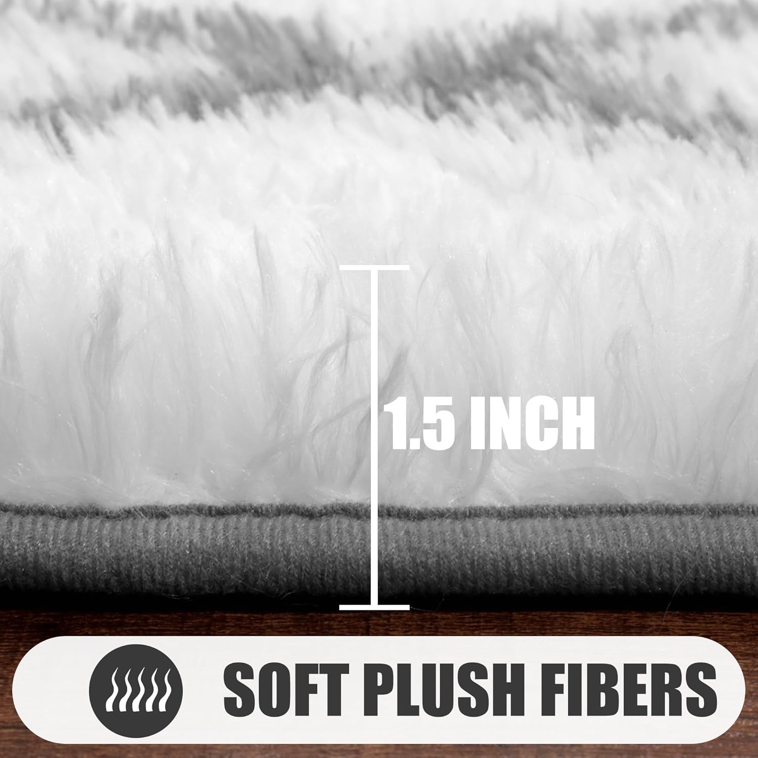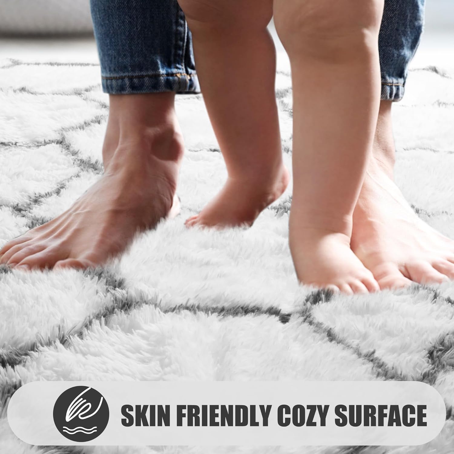 ONASAR Area Rugs for Living Room, Washable 5x8 Fluffy White and Grey Rug for Bedroom, Geometric Moroccan Indoor Shaggy Boho Soft Plush Floor Carpet for Kids Teen Nursery Dorm Home Decor Aesthetic
