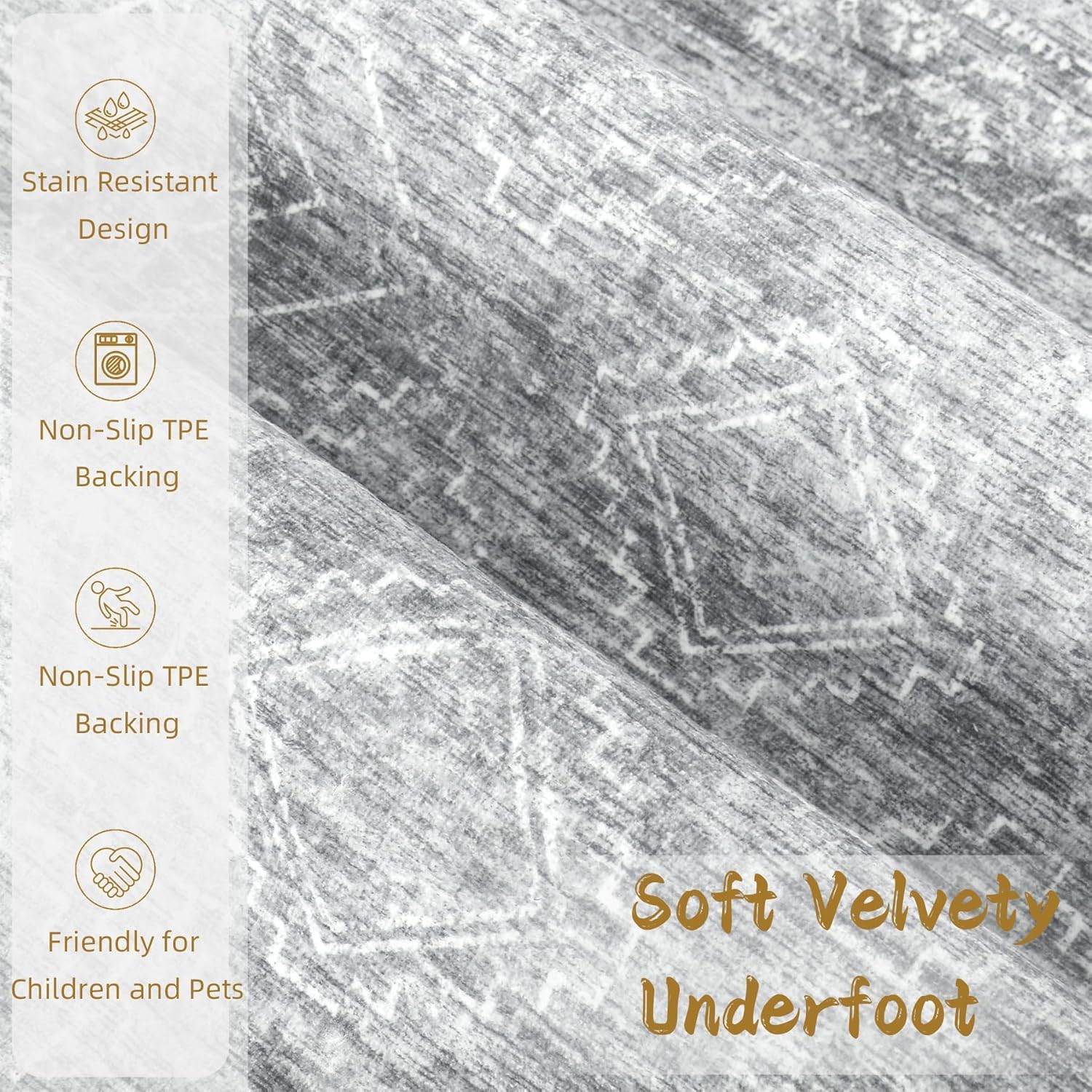 Vintage Moroccan Trellis Area Rug - 4x6 Machine Washable Boho Geometric Farmhouse Rugs Neutral Stain Resistant Non Slip Indoor Carpet for Bedroom Dining Room Nursery Home Office (4 x 6, Grey)