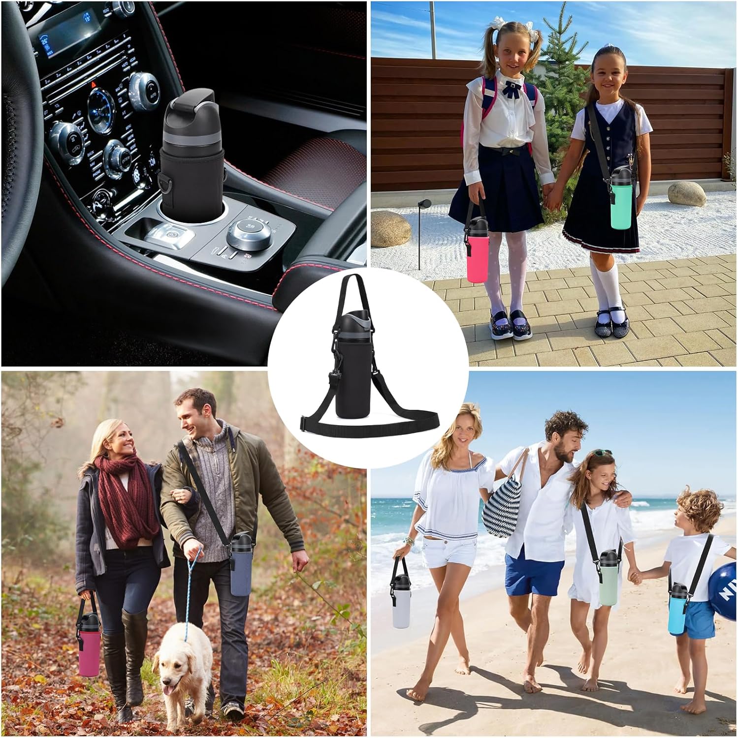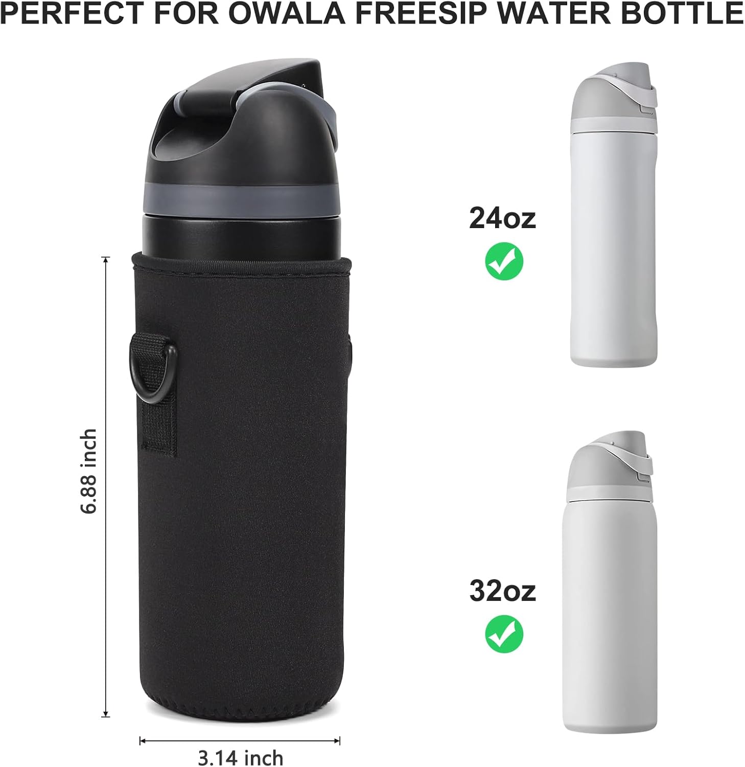 Neoprene Water Bottle Carrier Bag with Adjustable Shoulder Strap for Owala 24 OZ Tumbler, Insulated Water Bottle Cover for Owala FreeSip Insulated Water Bottle (Black, 24 OZ)