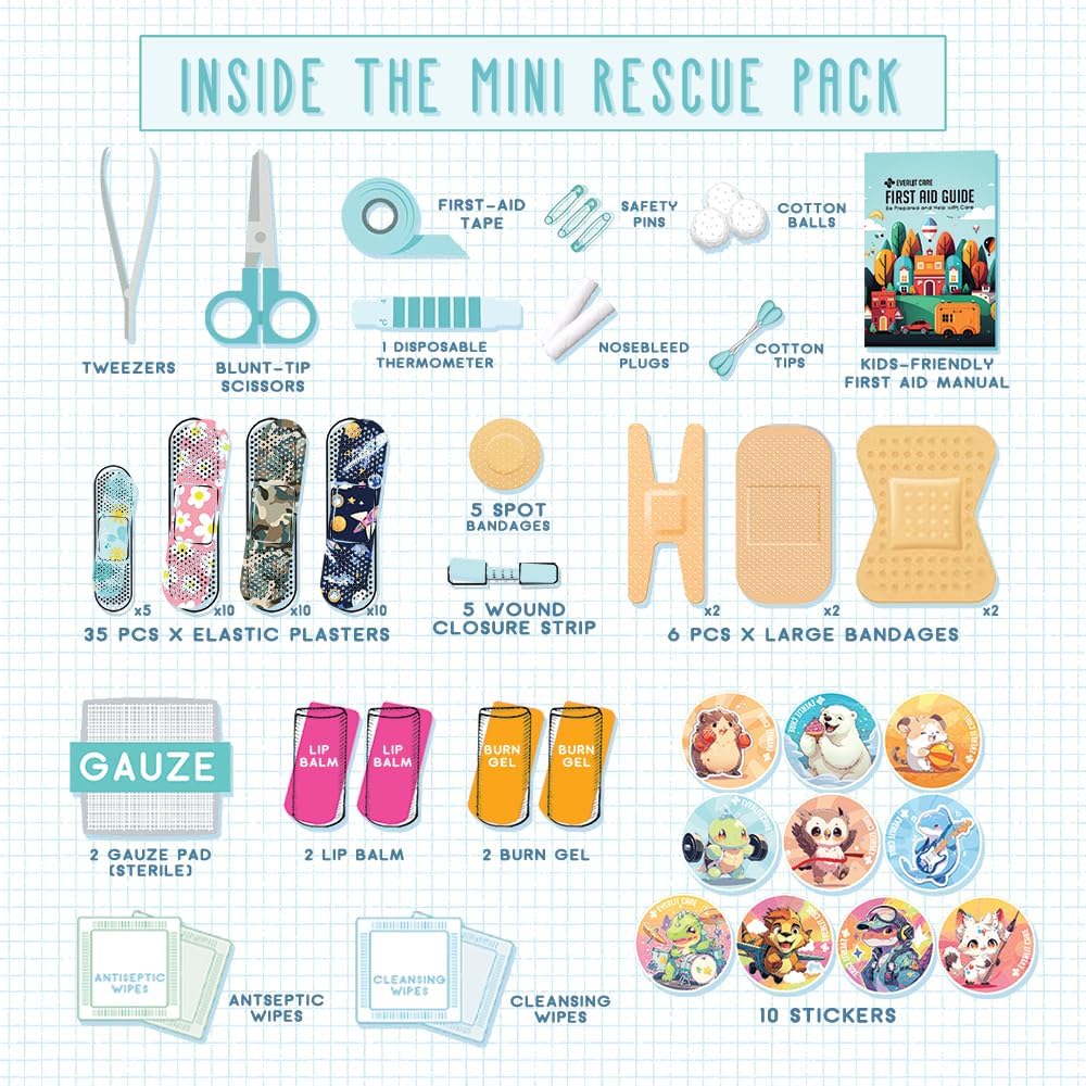 - π Compact and Portable for On-the-Go Safety: Designed for families on the move, the Mini Rescue Pack ensures you're always prepared with its compact size that easily fits into pockets, bags, and purses.