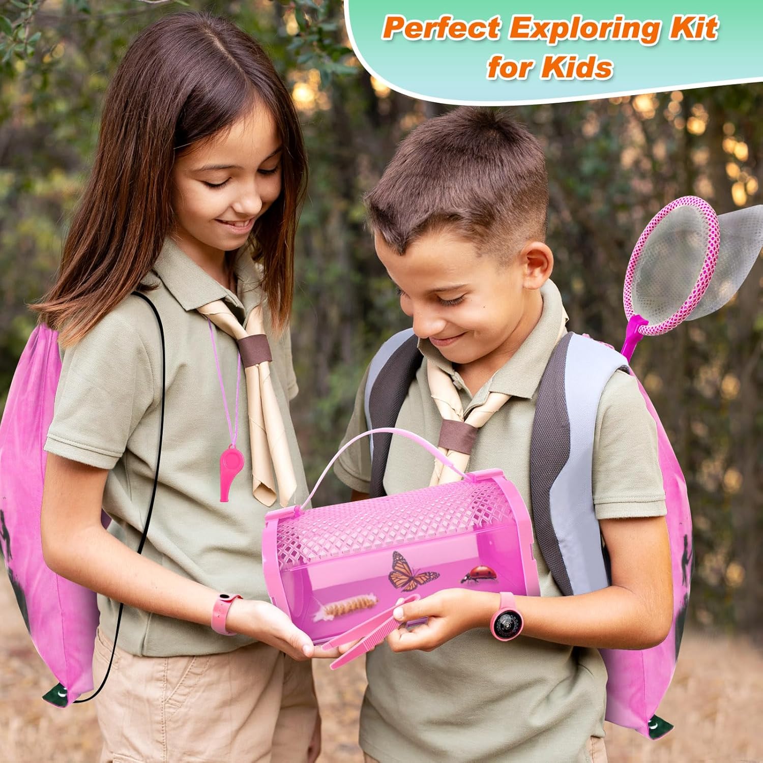- Multifunctional adventure Kit: Equipped with a portable bug cage, offers space for carious small animals like bugs. This outdoor adventure set includes accessories for bug catching and exploring, so that your child can explore all of nature in the outdoors, catching and observing.