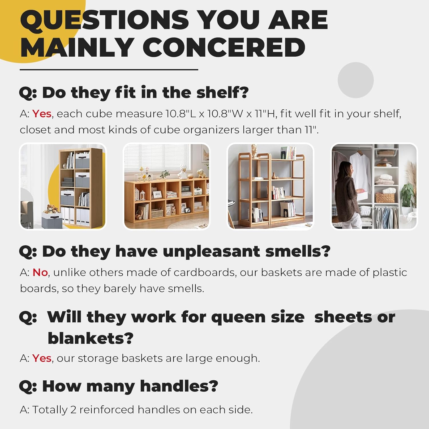 - ใ๐๐๐ ๐๐๐๐-๐๐๐๐ ๐ผ๐๐ใ These 6 pack fabric bins measure 10.8"L x 10.8"W x 11"H, perfectly fit with your cube storage organizer, also could be clothes storage bins for shelves, closet. For dorm room or camper rv closet, these bins offer a convenient and stylish storage solution.