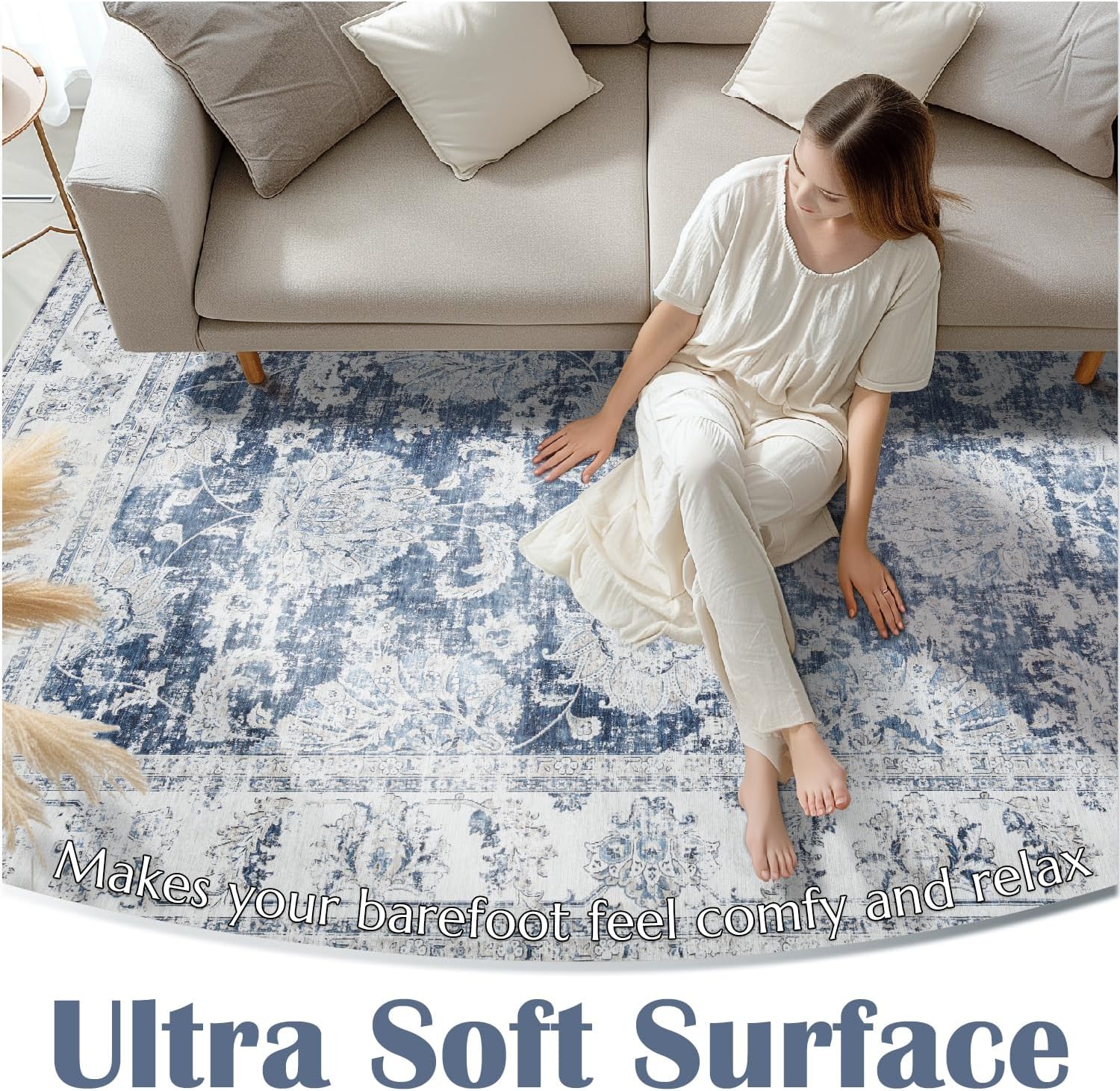 jinchan Runner Rug 2x6 Washable Hallway Runner - Vintage Floral Non Slip Low-Pile Soft Thin Kitchen Rug Distressed Carpet for Farmhouse Bedroom Entryway Laundry Room(2x6ft,Dark Blue)