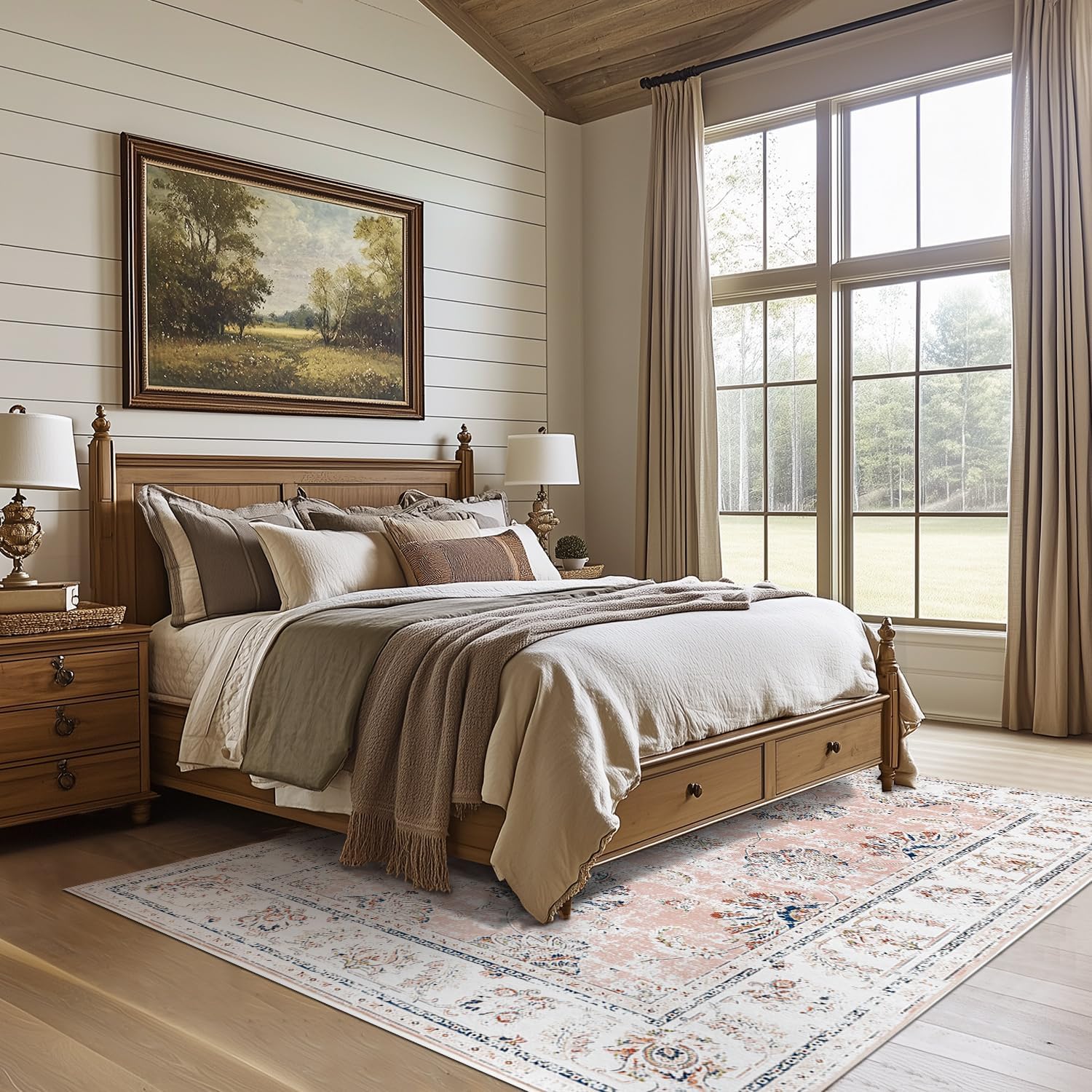 - Vintage Floral Design:The sturdy Low pile is patterned with a pretty medallion design, It has bohemian and traditional. Whether you're using it in the Nursery,Bedroom, Living Room or Dining Room, this Carpet is perfect for enhancing any space