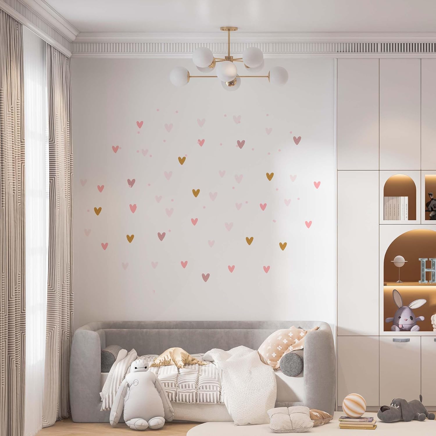 - โค๏ธ Package Content: Pink hearts wall decals come in a pack of 5 sheets. Includes: polka dots decals and heart stickers.