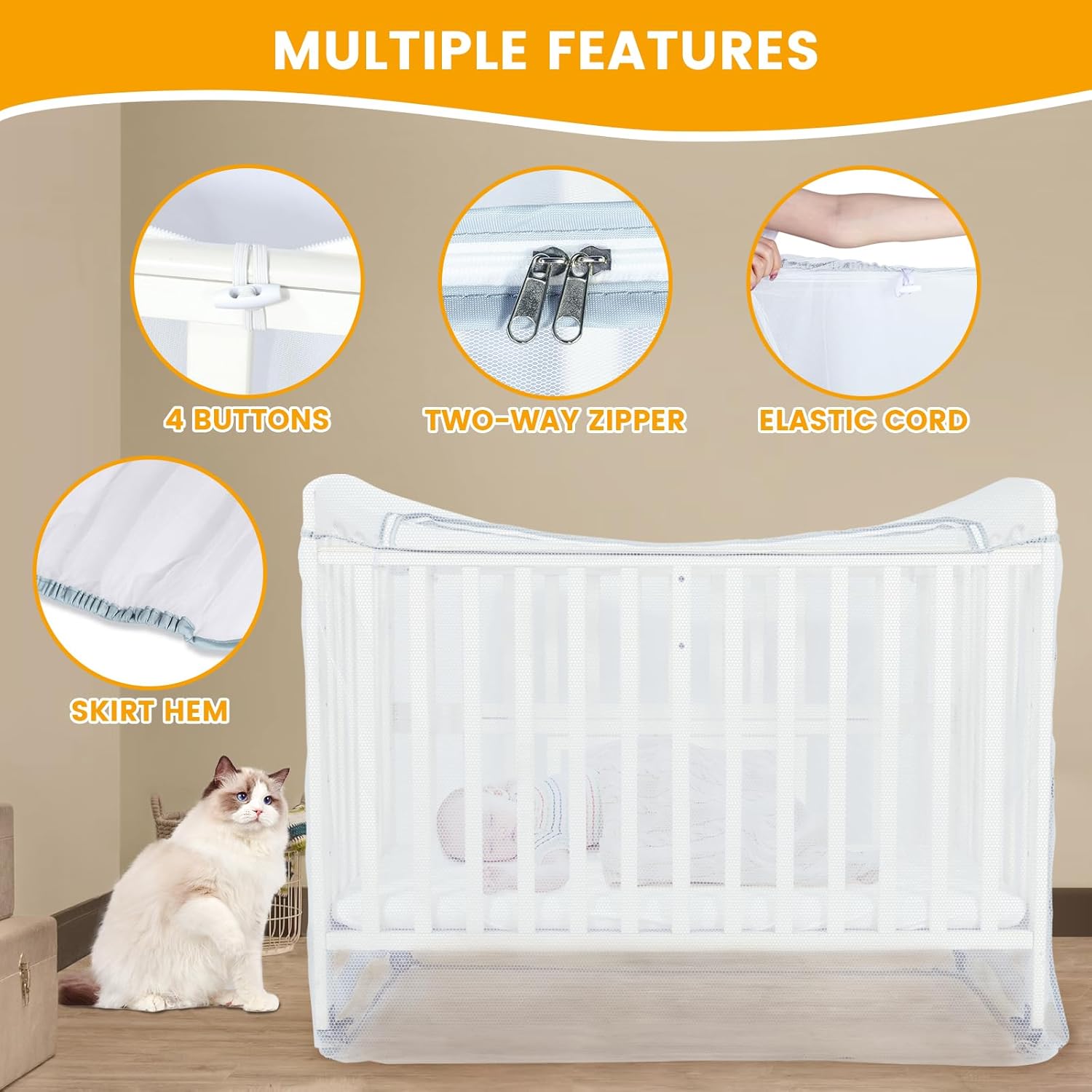 - πππ£π£ππ₯ ππππ¦πππ‘: Orzbow Crib Mosquito Net semi-circular, two-way zippered opening is designed to provide quick and easy access for baby. Besides, reinforced side buckles prevent the mosquito net from slipping out