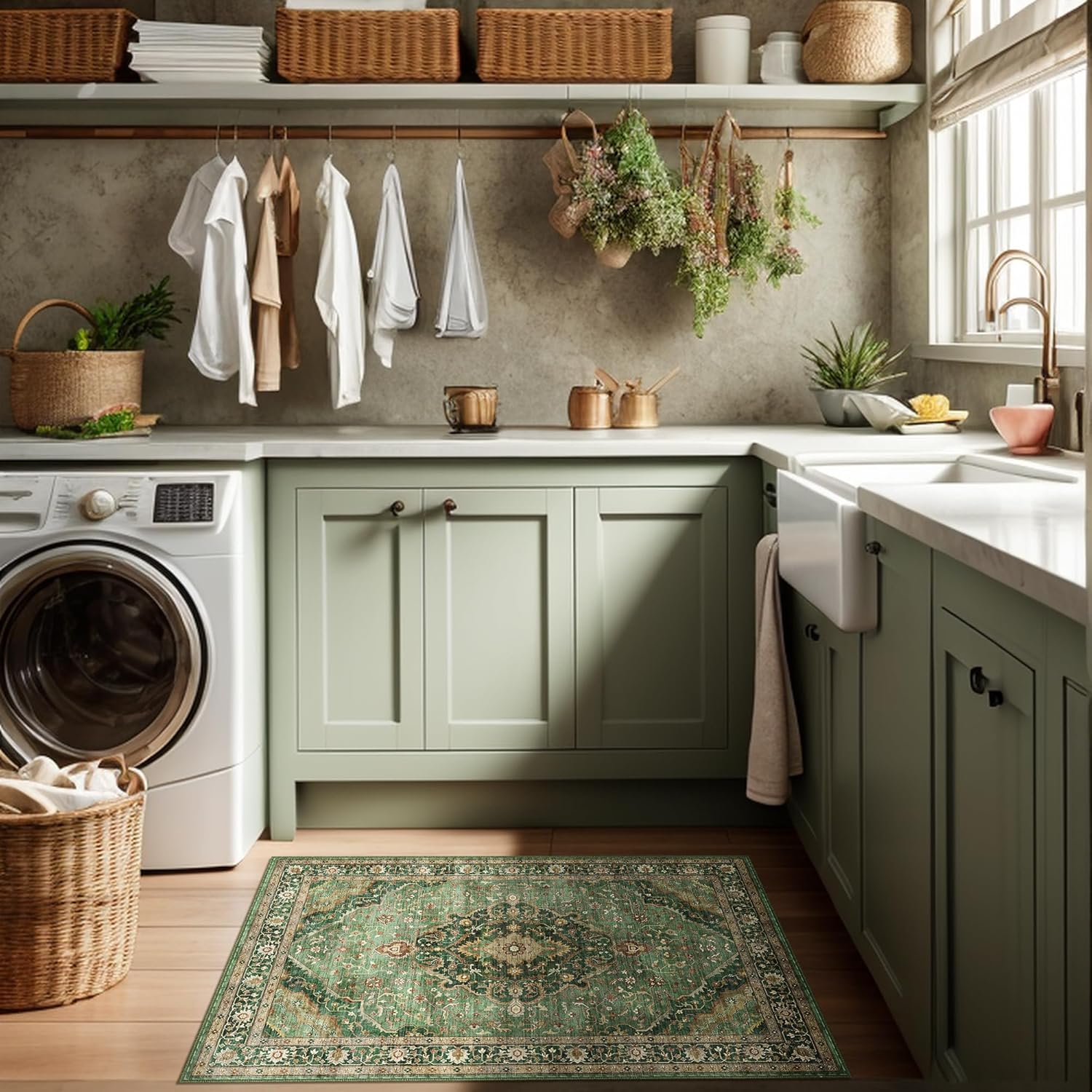 Green Area Rug Entryway Rugs for Bedroom Bathroom Kitchen - 2x3 Small Soft Rugs Low Pile Keep Off Rug Carpet Washable Rug Oriental Indoor Boho Area Rug Cute 2x3ft