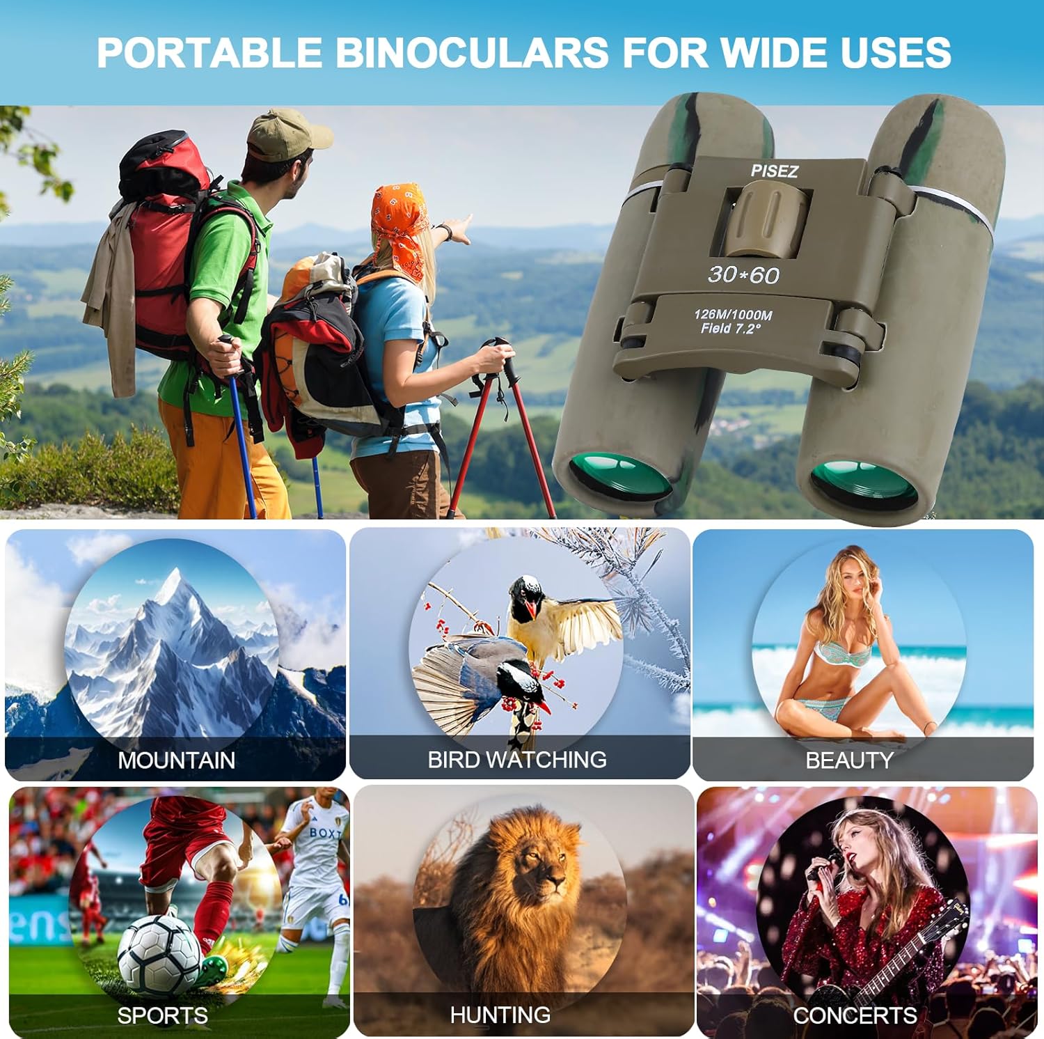 PISEZ 30X60 Compact Binoculars for Adults and Kids,Lightweight Foldable Easy Focus Small Binoculars for Bird Watching Hunting Concert Traveling Theater Opera Sightseeing