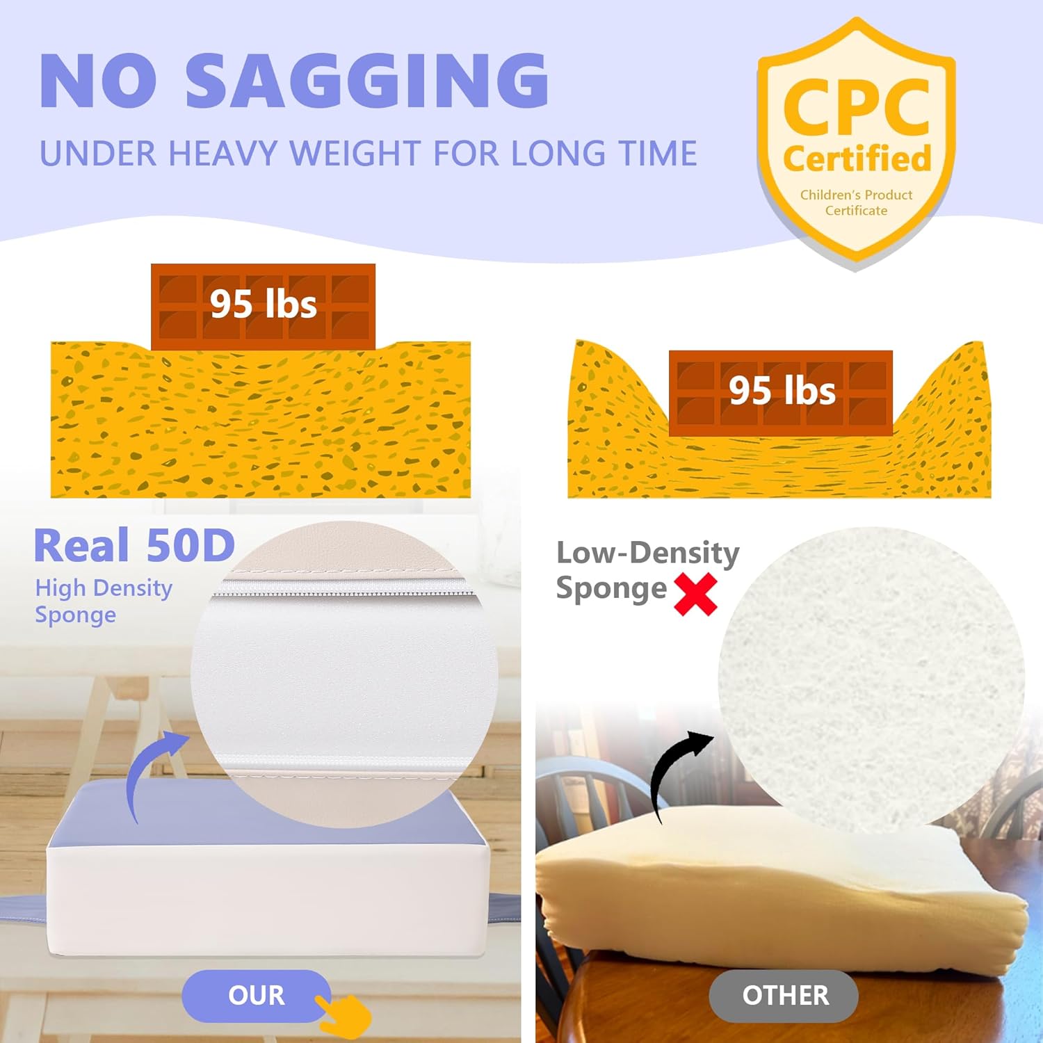 - 【REAL 50D Sponge, ZERO Sagging】The Booster Seat from Sylynvia Brand is of REAL 50D high-density sponge, which ensures softness and comfort while being able to withstand a weight of 80 pounds and will not sag when sitting for a long time, providing excellent support.This means that it has a long service life and your baby can use it from the age of 1 to 8 years old.