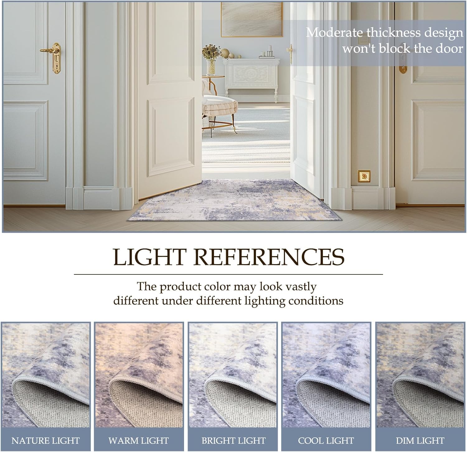 Washable Area Rugs 5'x7' Non-Slip Modern Abstract Soft for Living Room Entryway Bedroom Nursery, Print Pattern, Purple Grey Cream Yellow