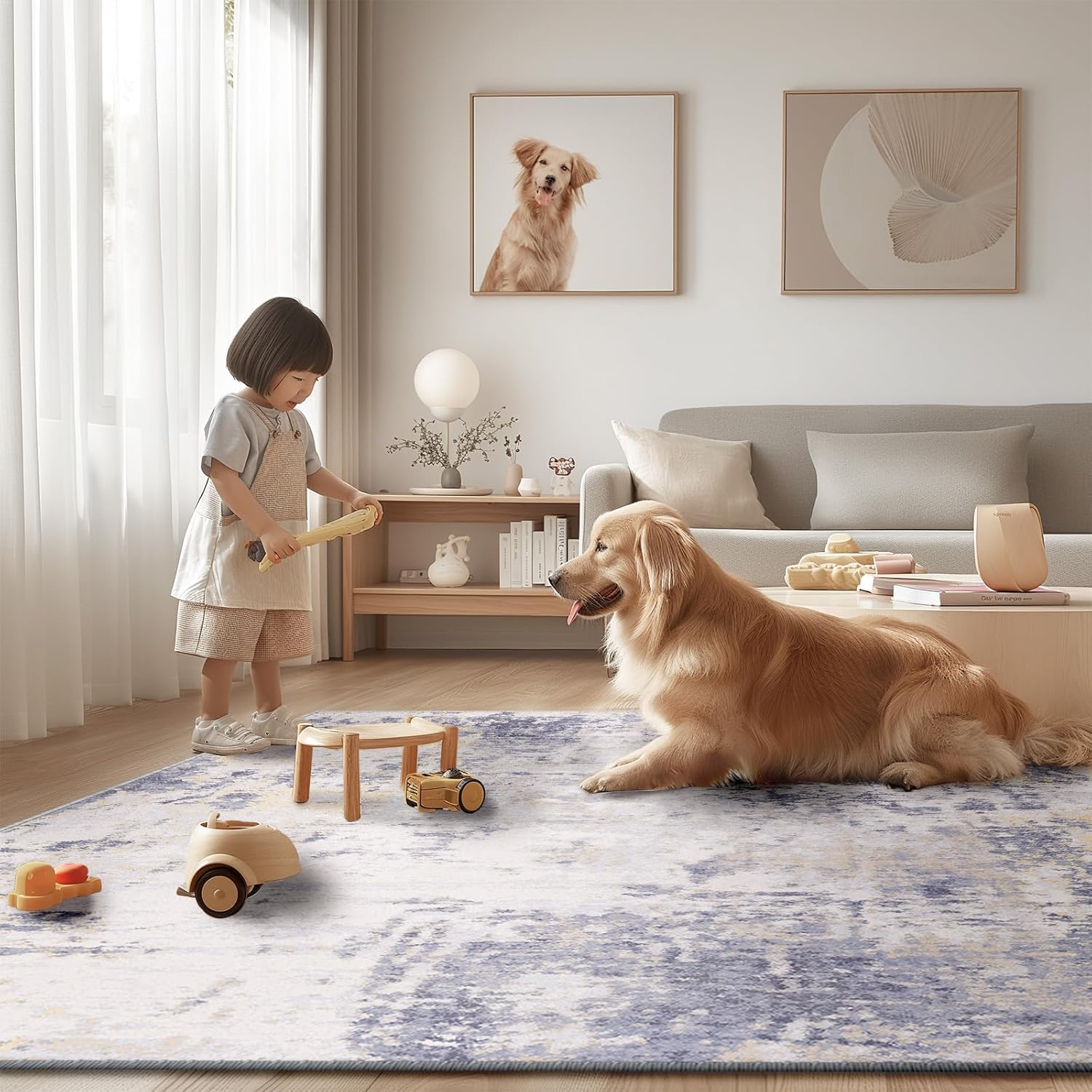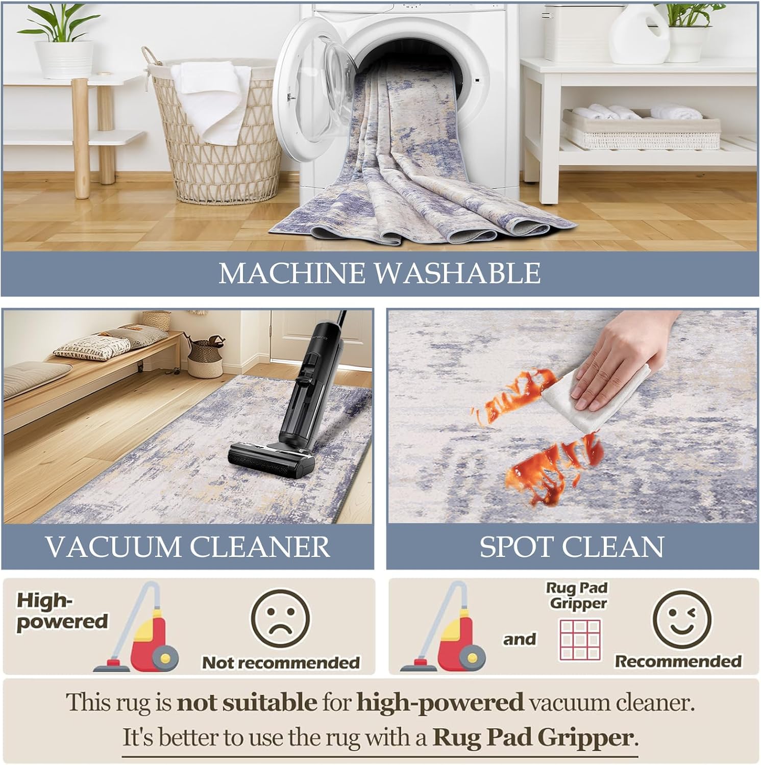 - Tides Series โ Effortless style that flows with your life.This modern machine-washable non-slip rug features reinforced edges and a low-pile design that resists dirt. Its water-repellent surface makes spills easy to clean - liquids bead up for quick wiping. Simply machine wash in cold water (no bleach) to refresh. The non-slip backing keeps it securely in place. A perfect blend of function and contemporary design for active homes.