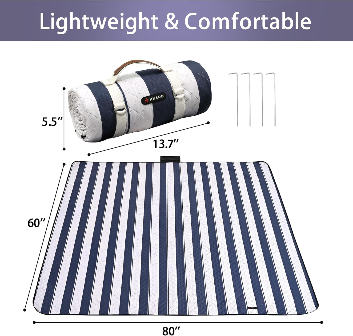 - ☀ 【Large size, Portable & Lightweight】- Our Picnic blankets unfoldedsize is 80''x 60''. It’s large enough to fit for 4-6 adults for siting, giving your children and pets a large area to play. This is a windproof picnic mat. Comes with ground spikes to keep the picnic mat from blowing up. Can be used in all seasons.
