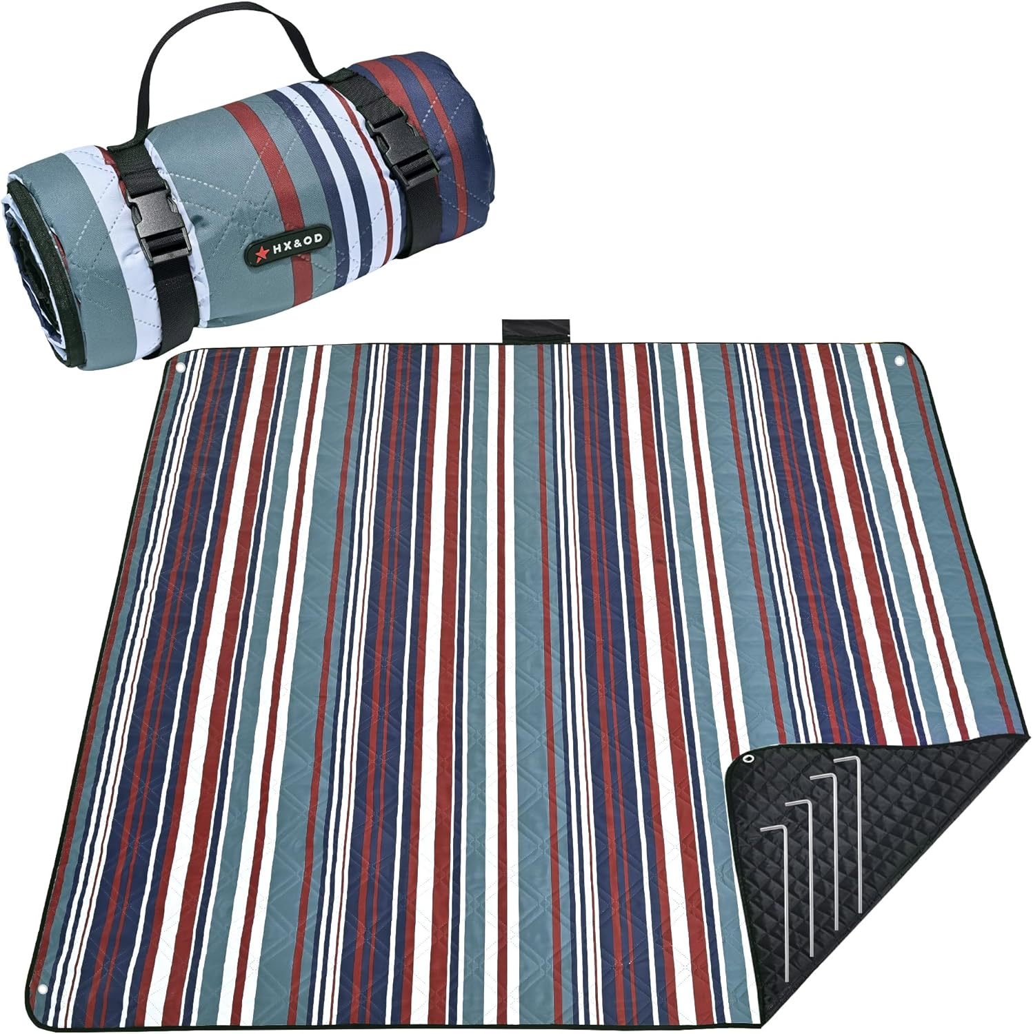 - ☀【Easy to Fold & Lightweight】Large picnic blanket can shrink down to a very portable size of 12"L x 4"W x 4"H. This Picnic blanket with stakes will not loose easily and take too much space. The weight of the mat is only 1.8lbs, you can fold it with simple steps, carry or store it anywhere you want.