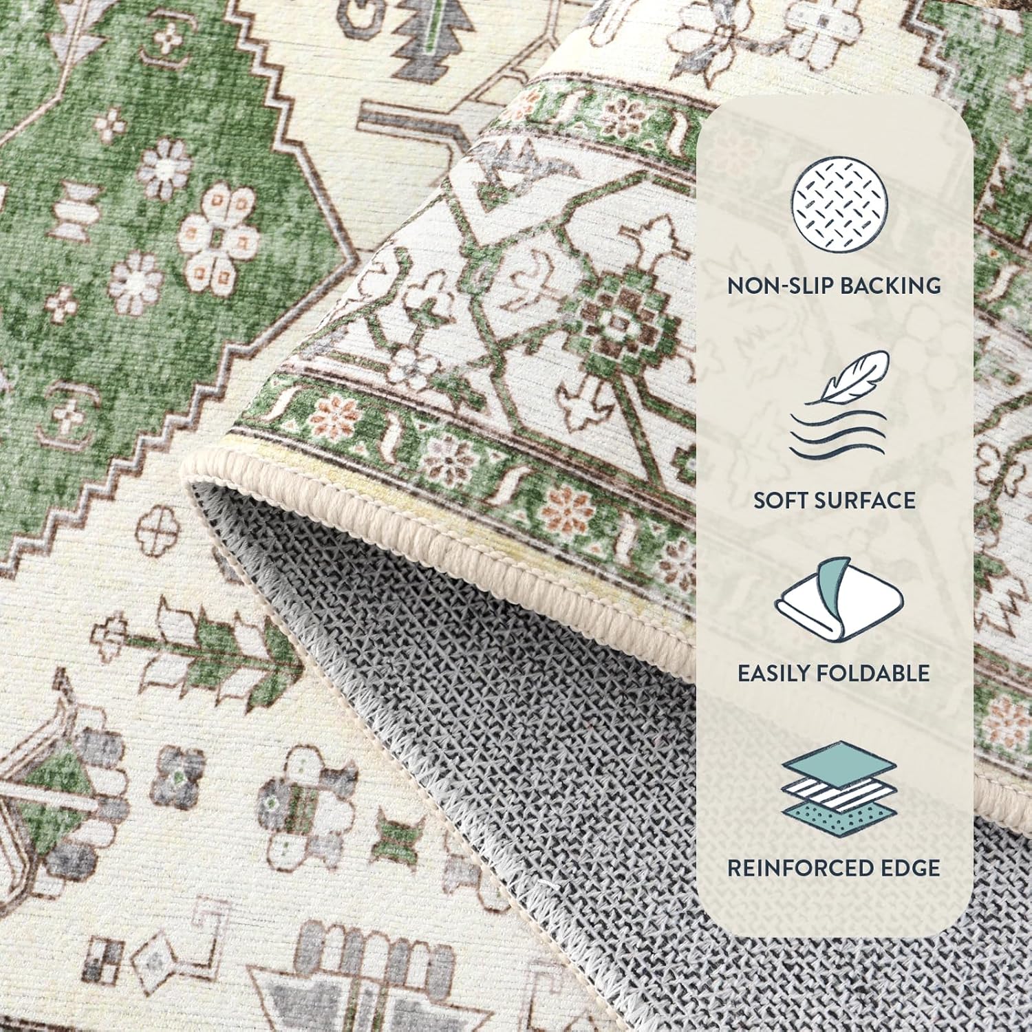 - 【Foldable Hallway Rug】:Foldable green runner rug make it easier to taking it in or out. The creases and resistance to laying perfectly flat are only temporary. ✨Tips: Roll the rug in the opposite direction and lay it flat for a while. Creases typically flatten out within 1-2 weeks of unrolling