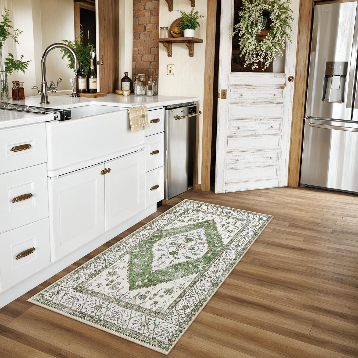 Lahome Boho Washable Hallway Runner Rug - 2x4 Rugs for Bedroom Non-Slip for Entrance (Green, 2'x4')