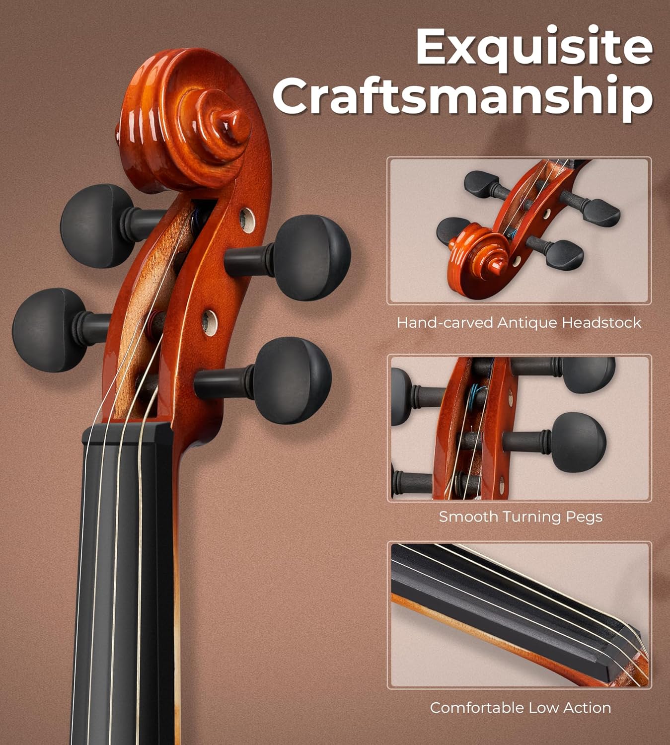 - Ideal for Beginners Violin: This professional violino's easy-to-use accessories and durable materials make it a perfect music gift choice for violin enthusiastics. Its solid build and matrial allows it to withstand frequent use by novice players without losing any timbre.