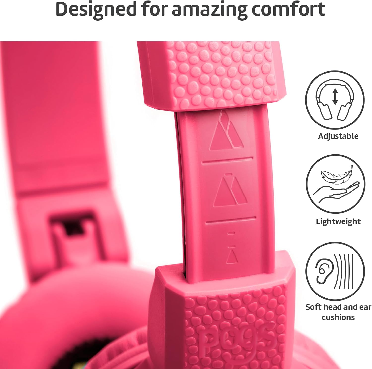 POGS Kids Bluetooth Wireless Headphones | The Gecko 2 | Foldable, Durable Headphones for Kids 3+ | Volume Limited 85 dB, Microphone | On-Ear | Wireless Music-Sharing Function (rPink)