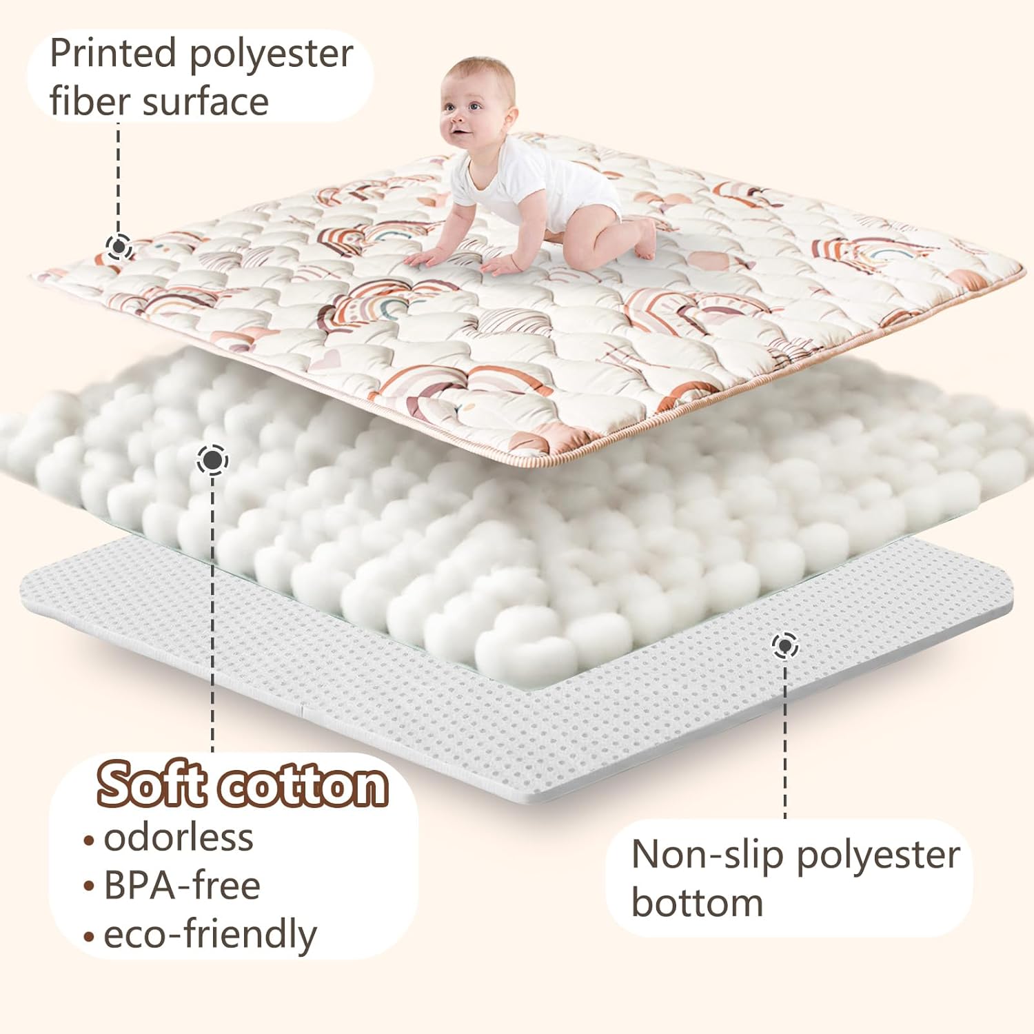 Baby Play Mat, 50x50 Playpen Mat with Super Soft Touch, Activity Mat with Upgraded Anti-Slip Bottom, Machine Washable Crawling Mat for Floor & Picnic(Boho Rainbow)
