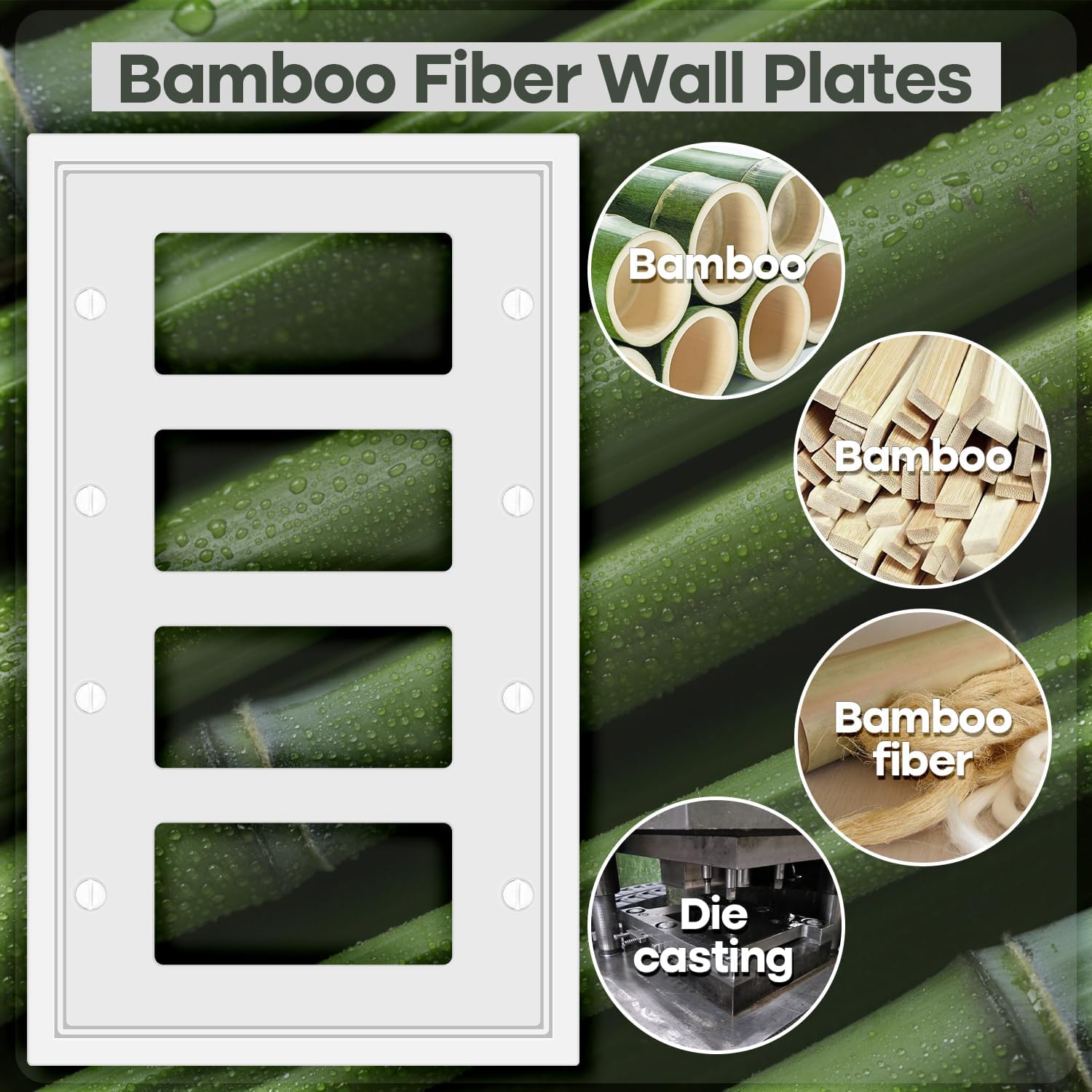 - Natural material: The quad decorator light switch covers is made of new natural material, this material is different from traditional plastic, so our wall plates with waterproof, moisture-proof, dust-proof, not easy to bend