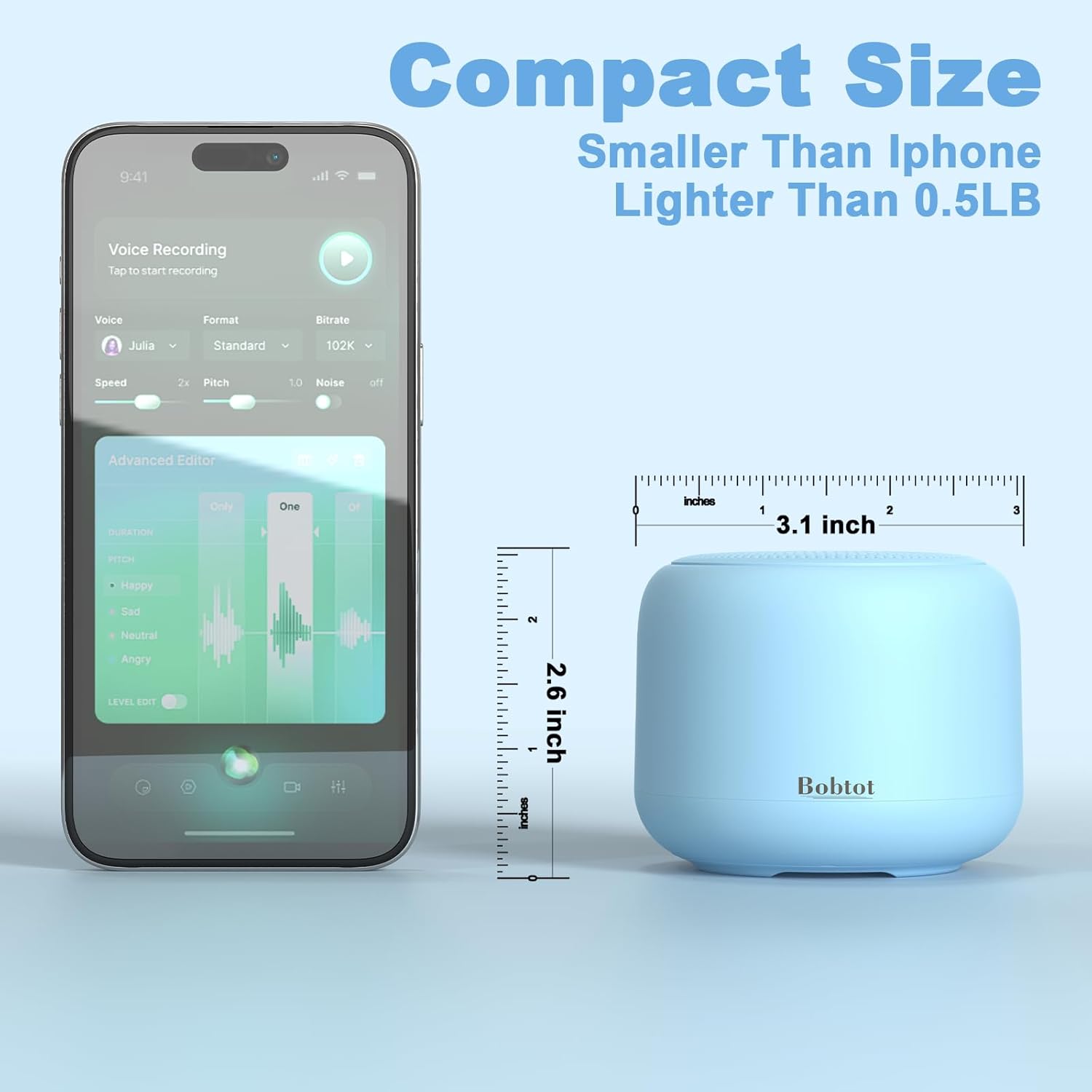 Bobtot Portable Bluetooth Speakers with Strap Easy to Carry, Wireless IPX5 Waterproof Mini Speaker with Loud Stereo Sound, 20 Hours Playtime, Rechargeable Battery, Built-in Microphone, Blue
