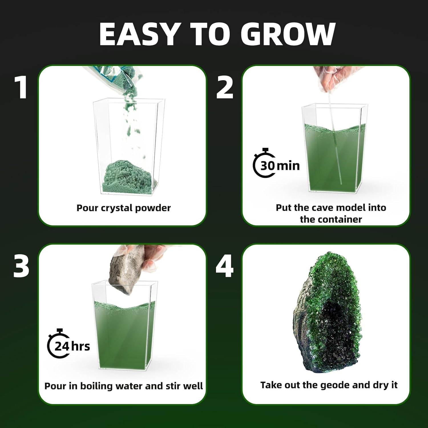 - 24-Hour Rapid Growth: The Gobidex Geodes growing kit can grow perfect crystals in just 24 hours, producing crystals larger; Kids can see their experiment results in a short time, it is not only amazing but also stimulates their curiosity