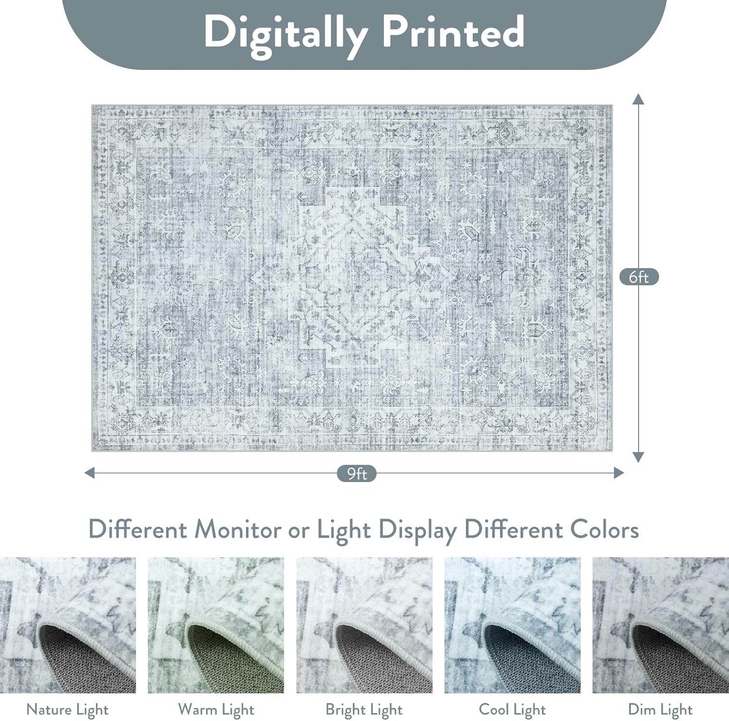 LIVEBOX Washable Area Rug 6x9 Rugs for Living Room Dining Room Under Table, Non-Slip Boho Neutral Carpet for Bedroom, Low-Pile Farmhouse Soft Carpets for Nursery Room Playroom, Grey