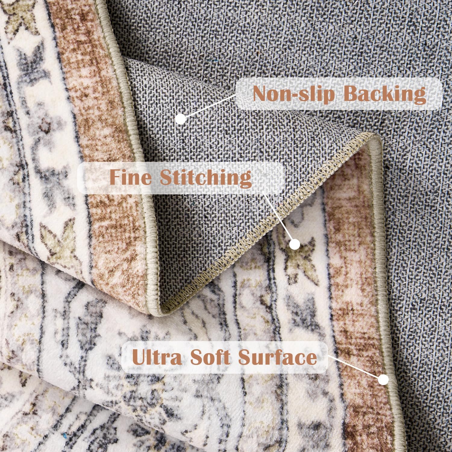 - Superior Material: Made of sturdy synthetic fibers,our area rug has a designer look and soft surface. non slip backing helps the rug stay in place well.Rug pad is recommended for use on hard floor