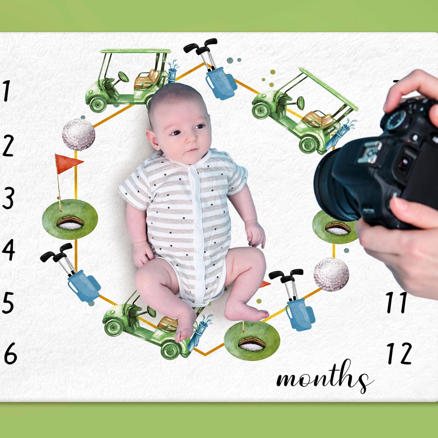 Golf Print Baby Monthly Milestone Blanket Newborn Baby Boy Green Gender Neutral Newborn and Nursery Essentials Personalized Ideas for Nursery Decor (Green, Golf)