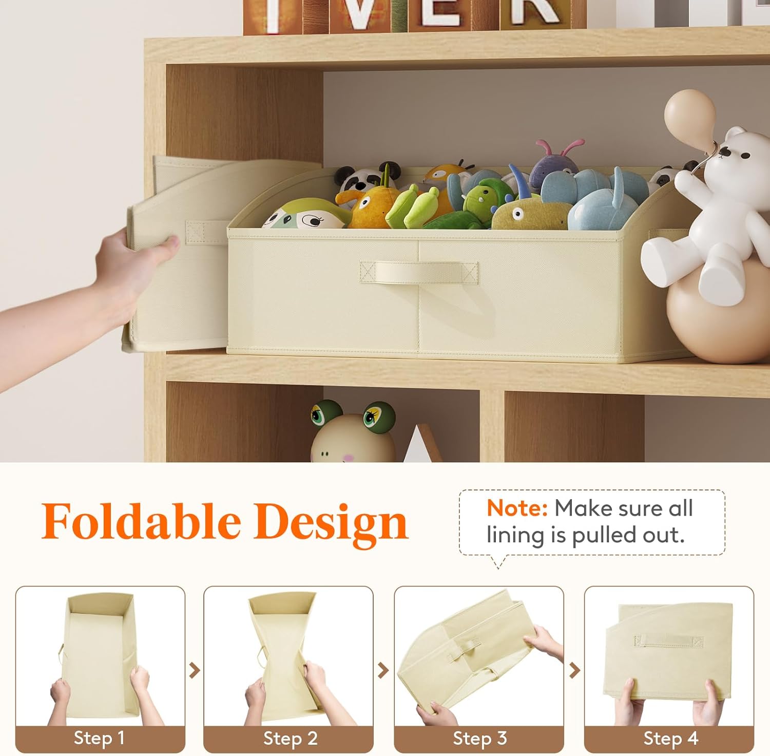 Lifewit Storage Baskets for Shelves, 6 Packs Non-woven Fabric Trapezoid Closet Organizer Bins with Handles, Foldable Clothing Containers Box for Clothes, Toy, Towel, Book, DVD, Hats, Large-Beige