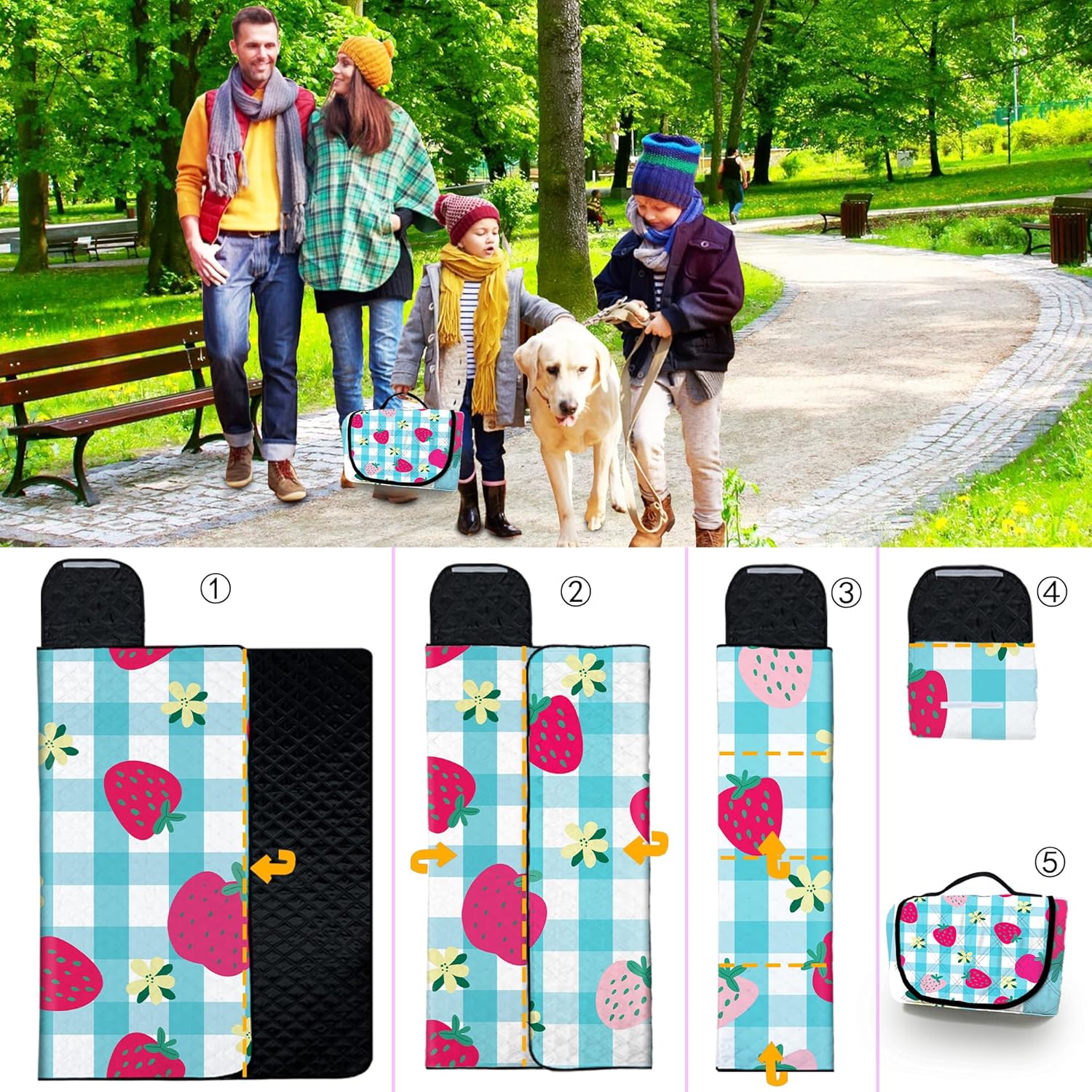 - 【🍓🏖️🍑Comfortable Picnic Blankets】The upper material is made of waterproof fongee fabric, Excellent waterproof performance, Can keep clean, The bottom layer is made of wear-resistant Oxford cloth, which repels moisture, sand and insects.Thickened middle padding layer can cushion hard or uneven ground, so that whether you are in the park, beach or any outdoor place, the Pcnic blanket can provide you with a comfortable and clean sitting surface.