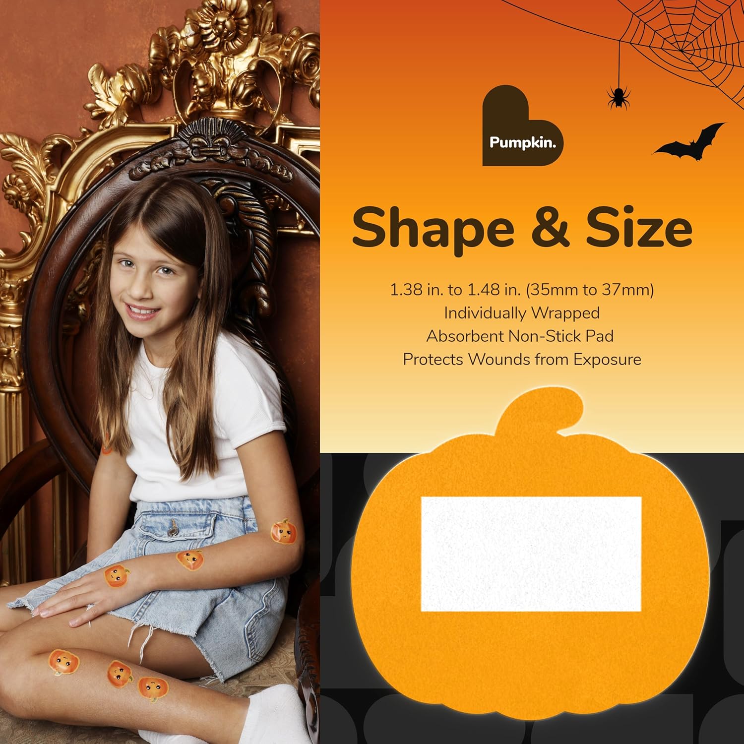 - PUMPKIN HALLOWEEN BANDAGES: This 50 piece tin of frightfully fun Halloween Pumpkin bandages is great for putting a smile on kids' faces while protecting wounds such as cuts, scrapes, and burns, and come in 2 assorted styles; sticky bandages are perfect for kids and adults alike, and also for school nurses and pediatric doctors