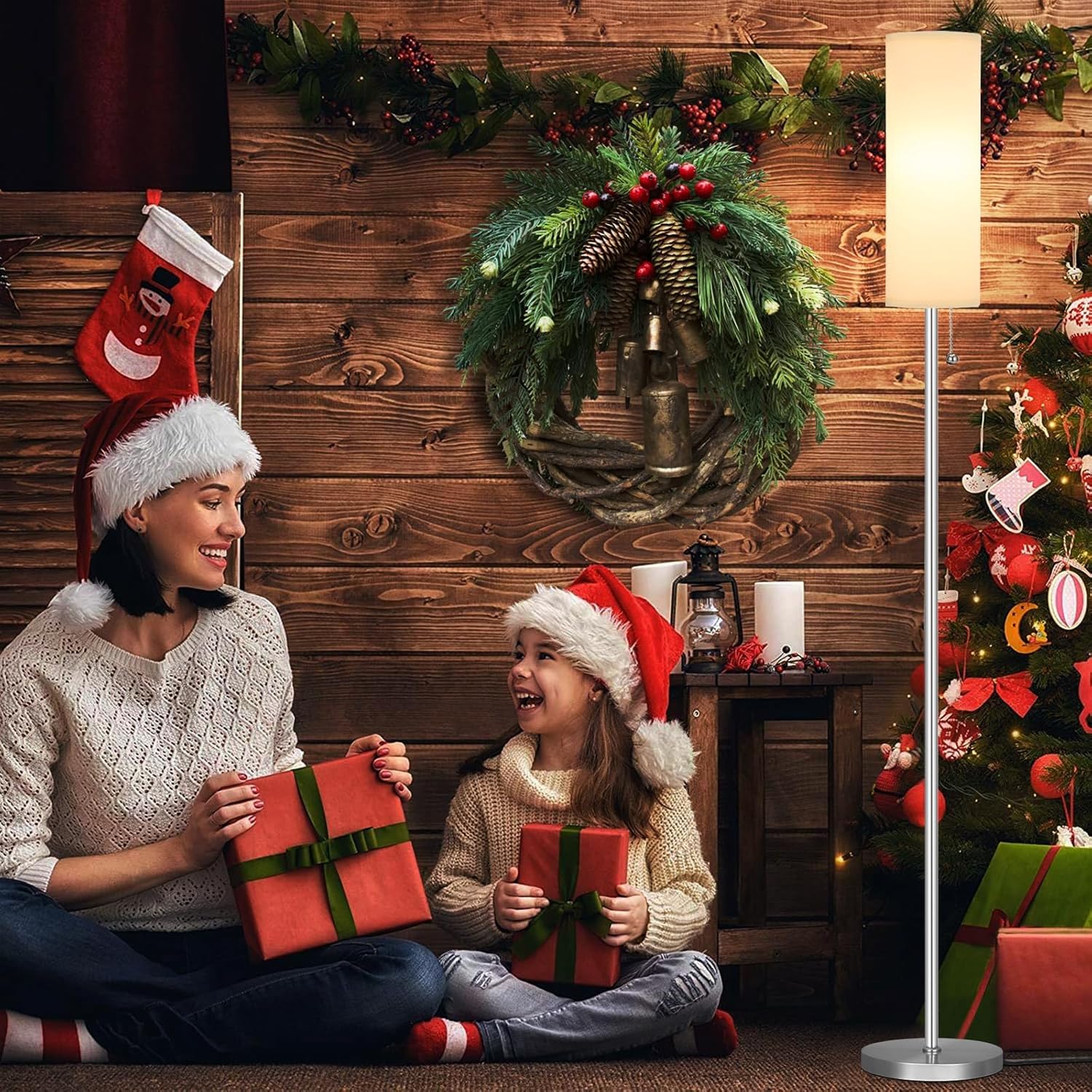 Ambimall Floor Lamp for Living Room with 3 Color Temperatures Bulb, 64" Standing lamp with Linen lampshade for Bedroom, Minimalist Pole Lamp, White Shade & Silver Pole